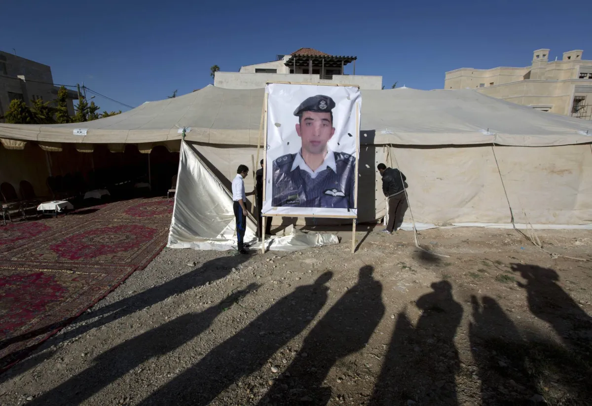 وفي 24 ديسمبر (كانون الأول) 2014، تحطّمت طائرة تابعة لسلاح الجو الأردني في سوريا. وأسر الطيار، معاذ الكساسبة، في اليوم نفسه على أيدي مقاتلي تنظيم «داعش» قرب مدينة الرقة (وسط) وتم إحراقه حيّاً داخل قفص قبل الثالث من فبراير (شباط) 2015، عندما نُشر تسجيل مصوّر مروع لعملية القتل.