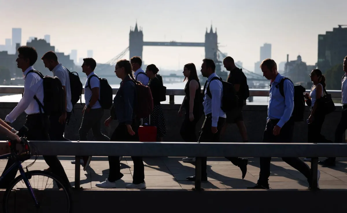 أشخاص يعبرون جسر لندن في طريقهم إلى العمل بلندن (إ.ب.أ)