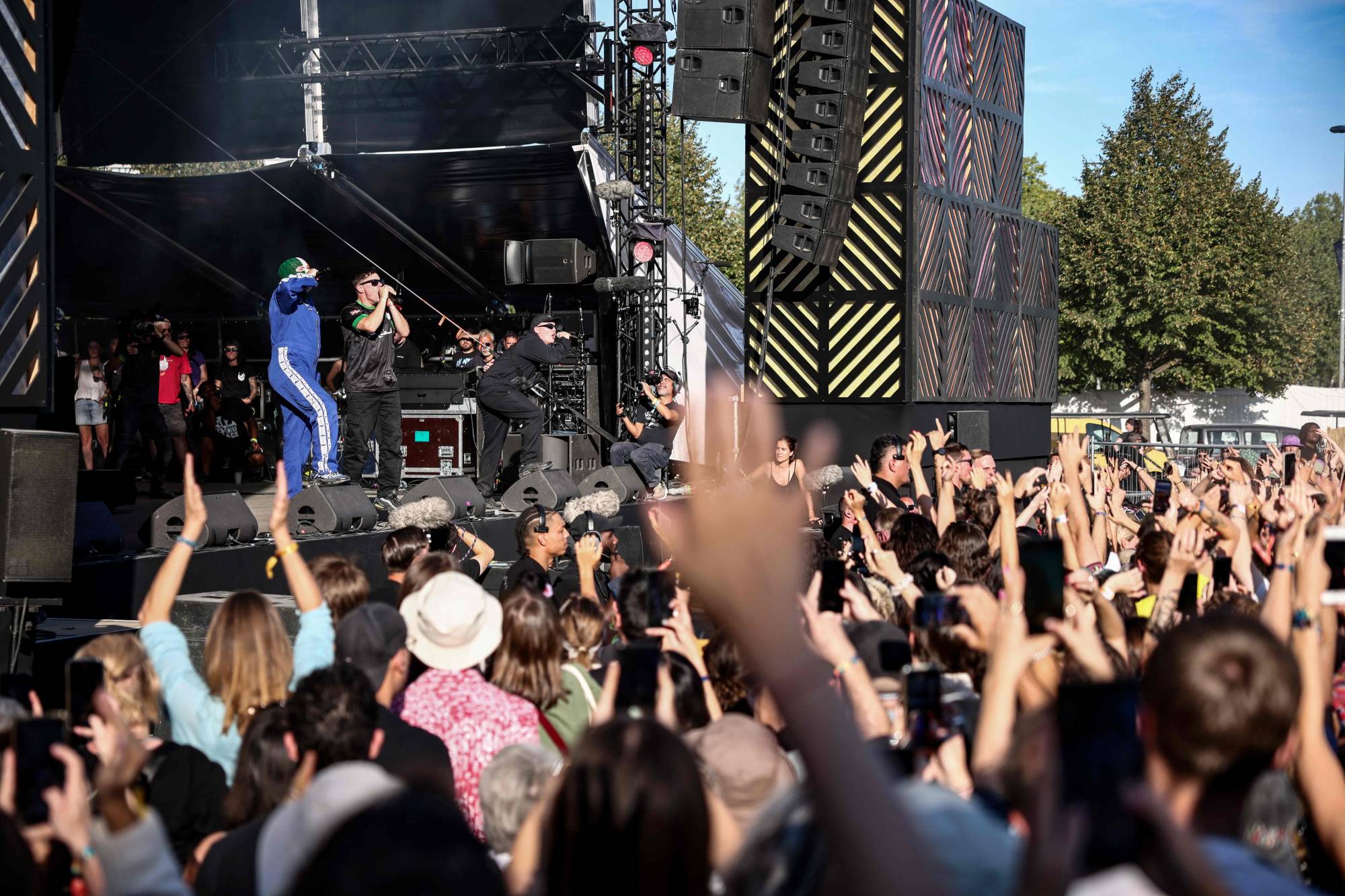 حفل فرقة الهيب هوب الآيرلندية الشمالية «نيكاب» في مهرجان «روك إن سين» الموسيقي في سان كلاود بالقرب من باريس (أ.ف.ب)
