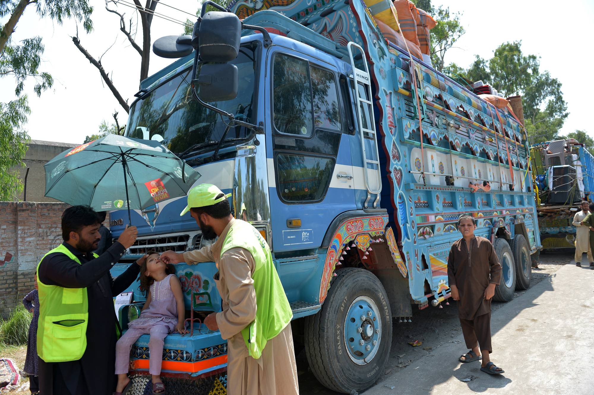 طفل أفغاني يتلقى لقاح شلل الأطفال في مركز الإعادة الطوعية التابع لمفوضية الأمم المتحدة لشؤون اللاجئين... بينما ينتظر اللاجئون وثائقهم قبل عودتهم إلى أفغانستان (إ.ب.أ)
