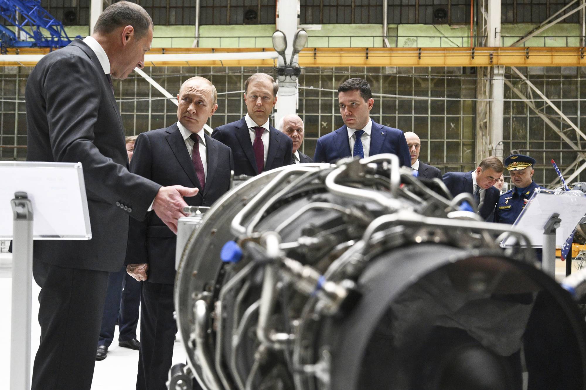 الرئيس الروسي فلاديمير بوتين يزور منشأة لمحركات الطائرات برفقة مسؤولين في سمارا بروسيا (أ.ب)