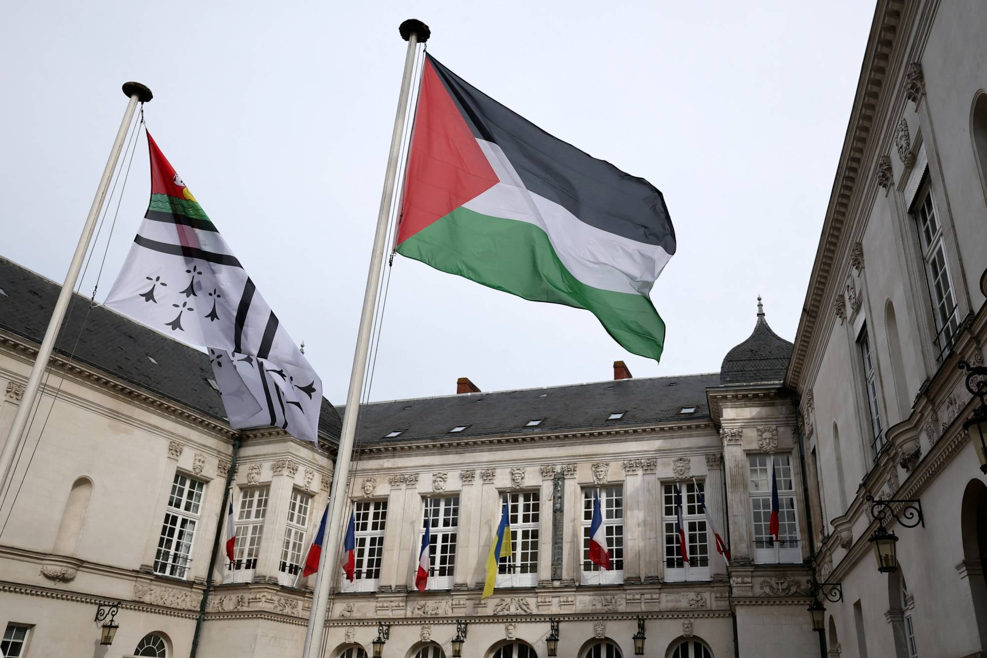 وكان العلم الفلسطيني يرفرف من قبل فوق مبنى بلديتها في نانت التي تعد إحدى المدن الكبرى في غرب فرنسا، وفق مراسل «الصحافة الفرنسية».