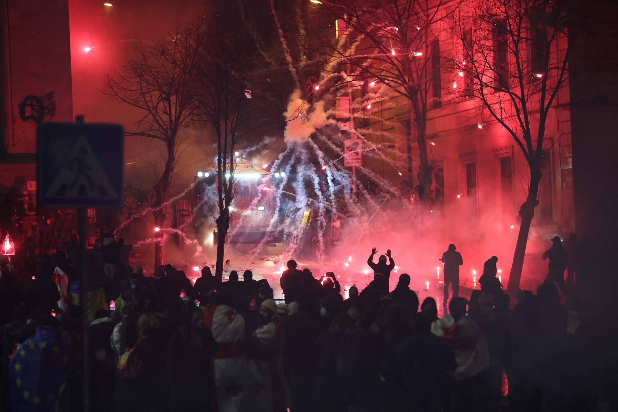 جانب من المواجهات بين المتظاهرين وقوات الأمن في تبليسي (أرشيفية - أ.ف.ب)