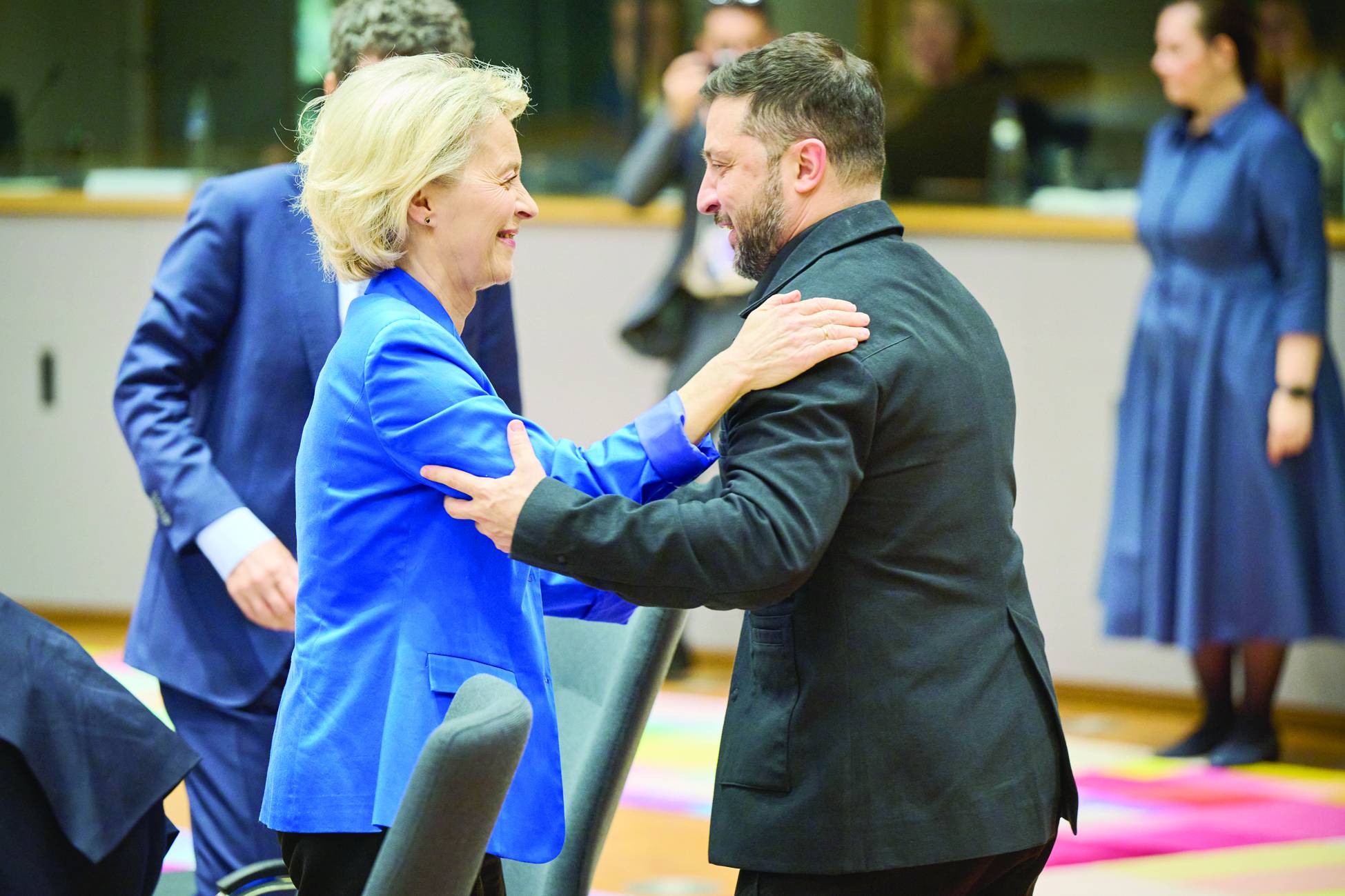 زيلينسكي وفون دير لاين لدى مشاركتهما في القمة الأوروبية ببروكسل الخميس الماضي (د.ب.أ)