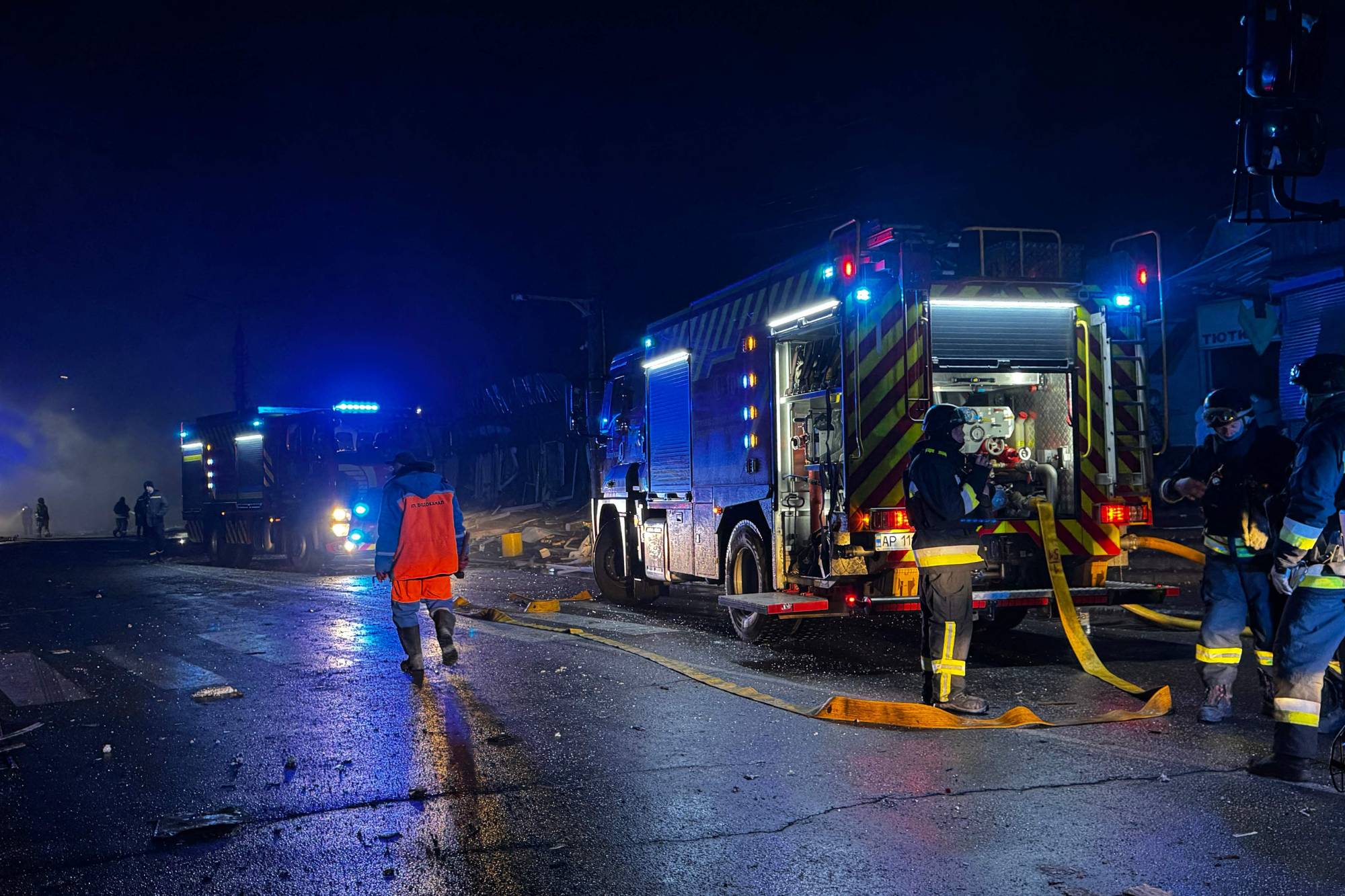 وأظهرت الصور التي نشرها فيدوروف على الإنترنت مباني تلتهمها ألسنة اللهب وشوارع مليئة بالركام.