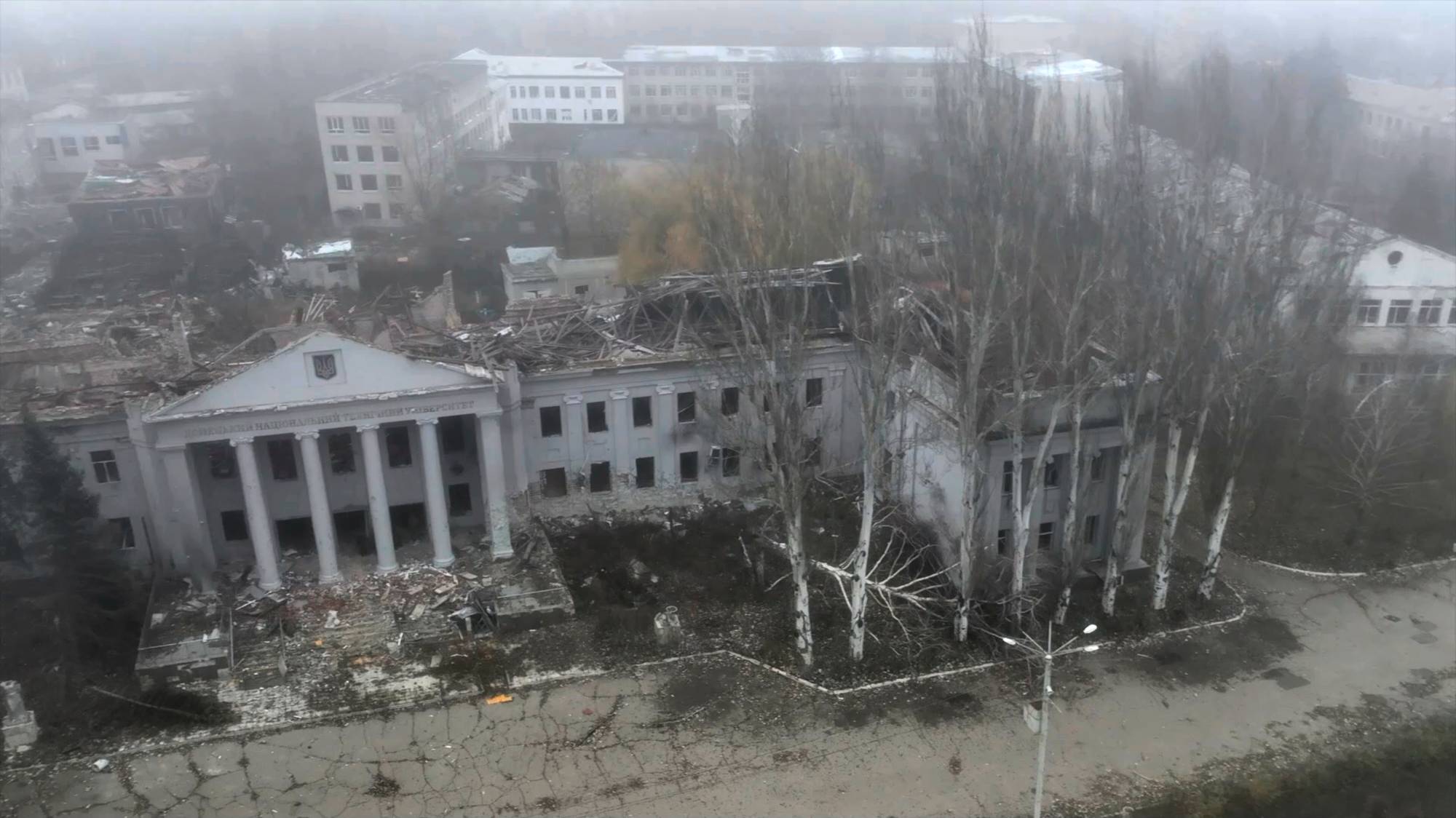 صورة مأخوذة من مقطع فيديو قدّمته دائرة الصحافة التابعة لوزارة الدفاع الروسية يوم الثلاثاء 2 ديسمبر 2025 تظهر مبنى متضرراً من الجامعة التقنية الوطنية في بوكروفسك وهي مدينة في منطقة دونيتسك بأوكرانيا (أ.ب)