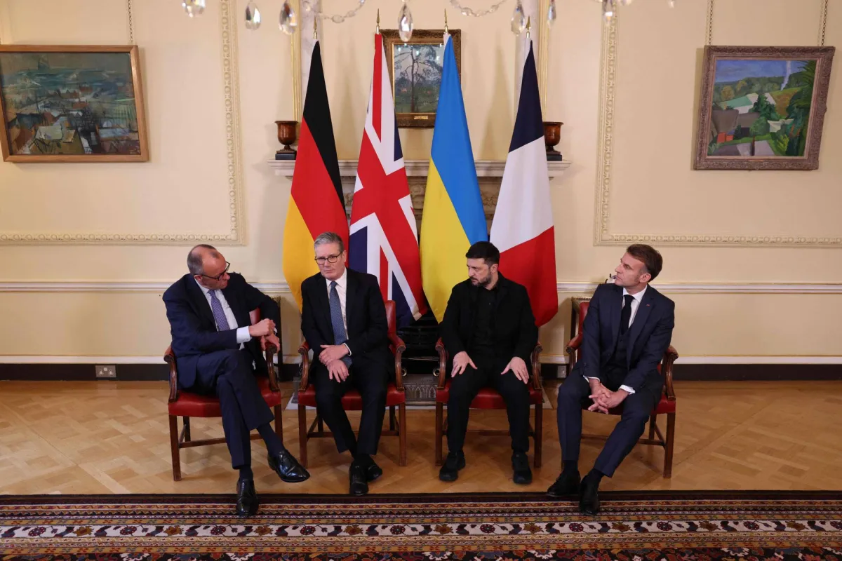 التقى رئيس الوزراء البريطاني كير ستارمر والرئيس الفرنسي إيمانويل ماكرون والمستشار الألماني فريدريش ميرتس زيلينسكي لنحو ساعتين تقريباً، بعد أن اتهمه الرئيس الأميركي دونالد ترمب بأنه لم يطلع على مقترحه الأخير لإنهاء النزاع مع روسيا والذي لم تُكشف تفاصيله بعد.