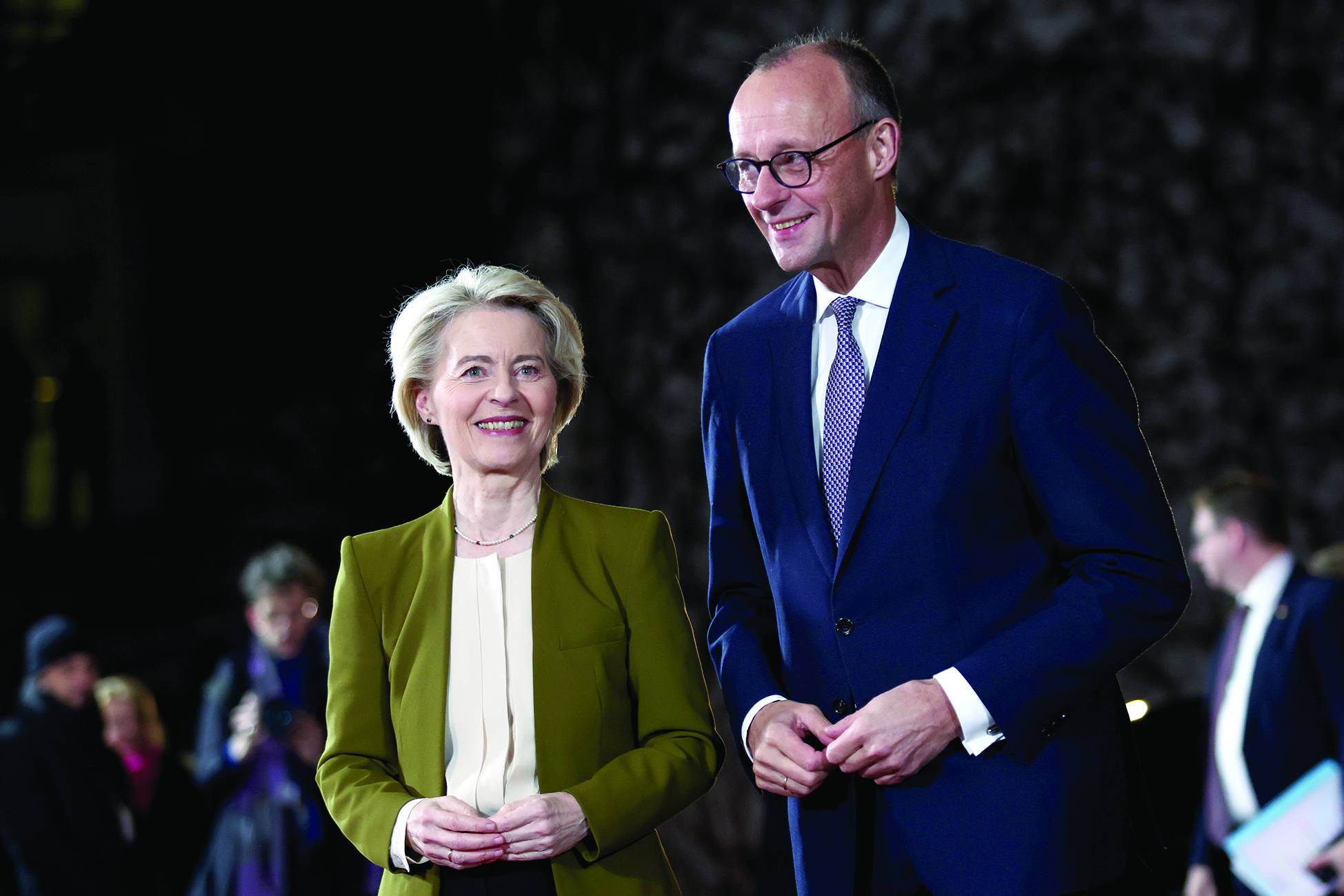 المستشار الألماني فريدريش ميرتس مع رئيسة مفوضة الاتحاد الأوروبي (أ.ب)
