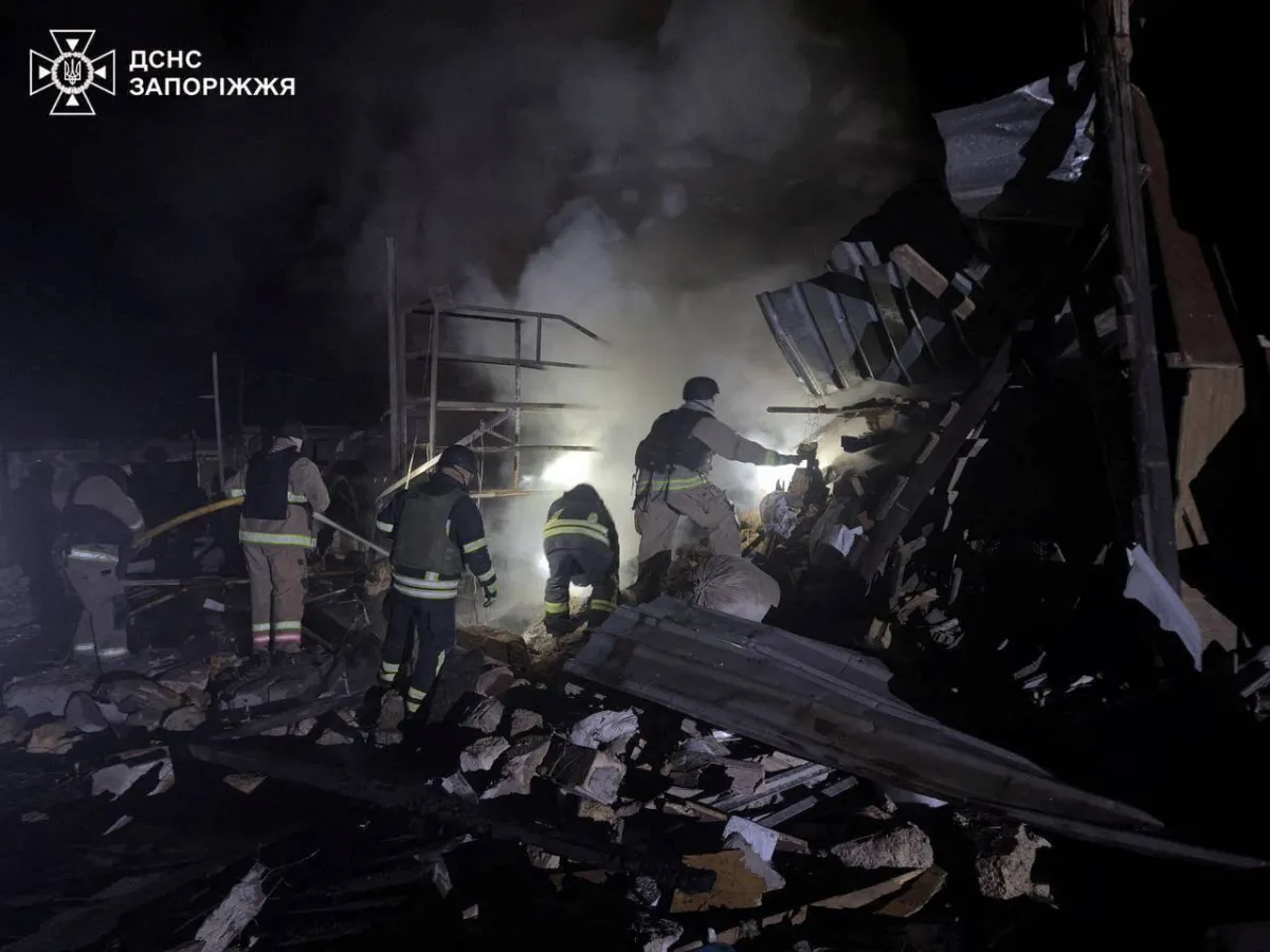 عناصر إطفاء يحاولون إخماد حريق سببته ضربة جوية روسية على زابوريجيا يوم 24 ديسمبر 2025 (رويترز)