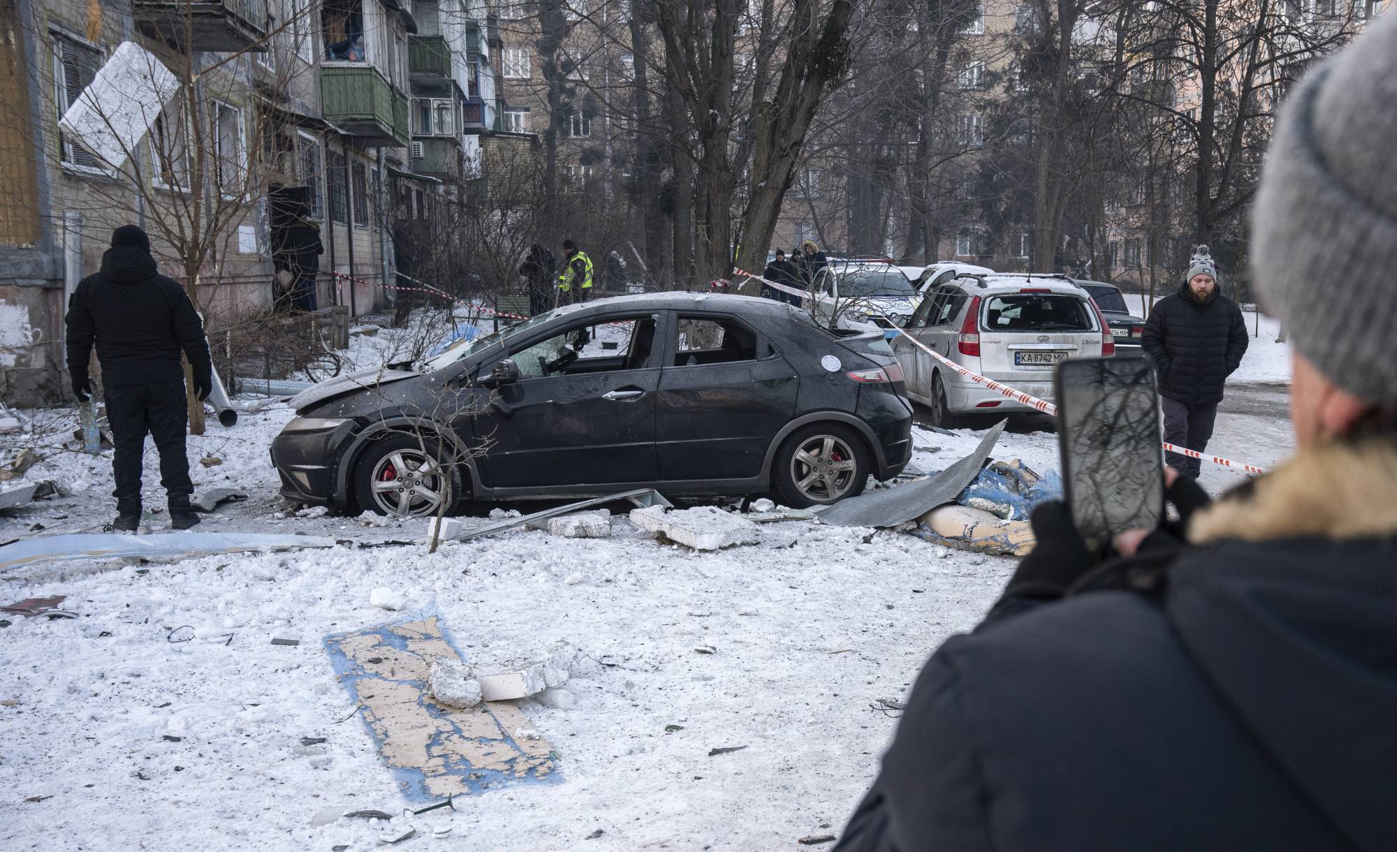 أضرار جراء هجوم بمسيّرة روسية في منطقة سكنية بكييف الثلاثاء (إ.ب.أ)
