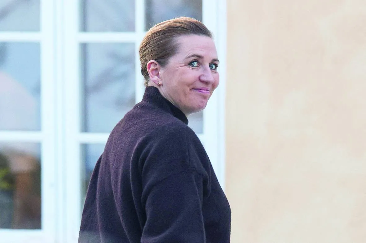 رئيسة الوزراء الدنماركية ميته فريدريكسن بعد وصولها إلى غرينلاند (رويترز)