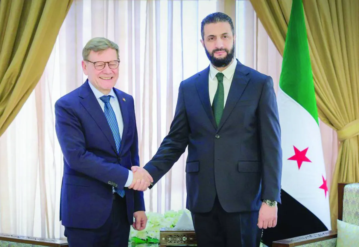 من استقبال الرئيس أحمد الشرع للوزير الألماني يوهان فاديفول في دمشق أواخر العام الماضي (سانا)