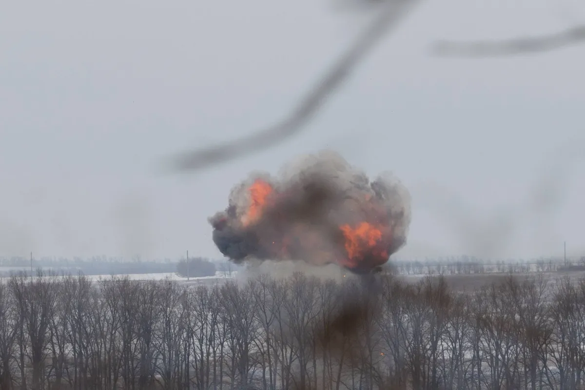 لحظة انفجار مُسيَّرة روسية في شرق أوكرانيا (أ.ف.ب)