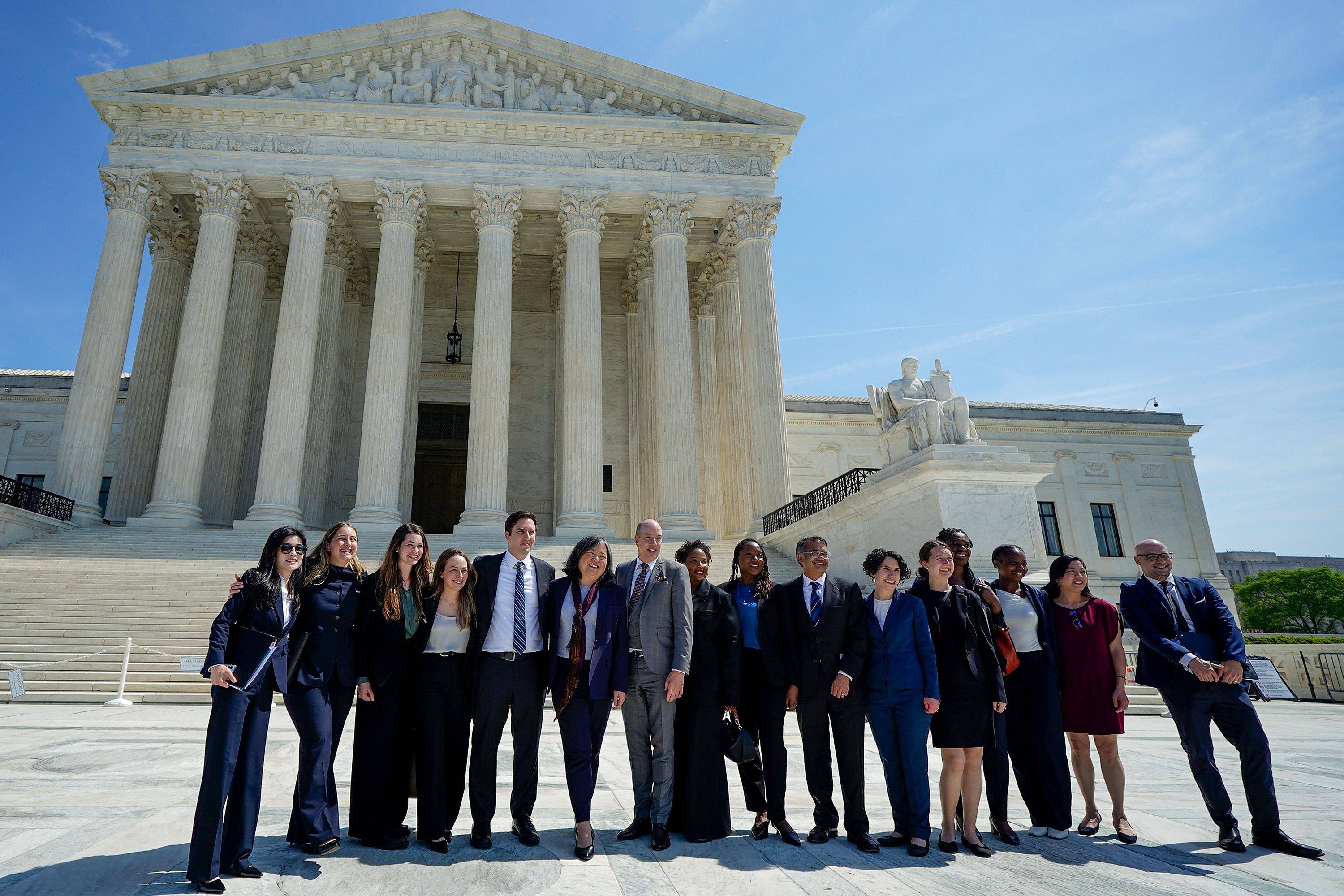 الفريق القانوني لاتحاد الحقوق المدنية أمام المحكمة العليا في واشنطن دي سي (رويترز)
