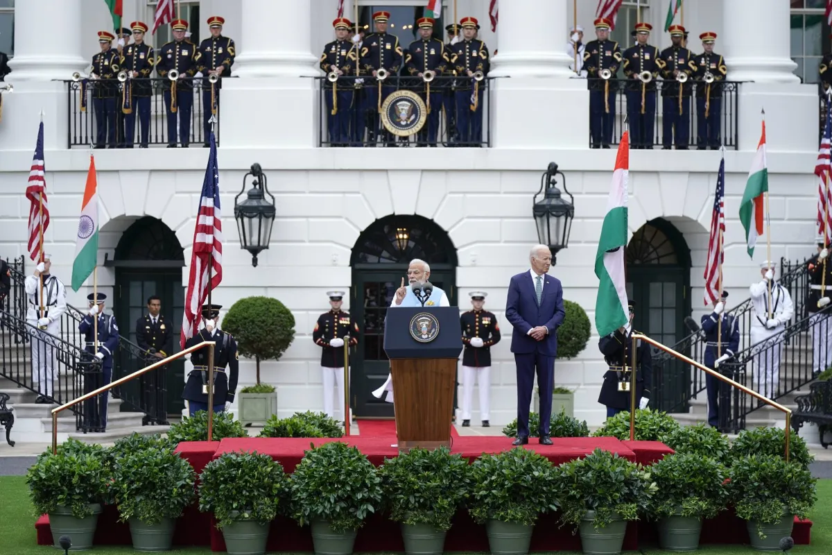 استقبل الرئيس الأميركي جو بايدن، في البيت الأبيض، الخميس، رئيس الوزراء الهندي ناريندرا مودي، وأشاد بالعلاقات «المحورية» التي تربط بين البلدين، مشيراً إلى العلاقات المميزة بين البلدين في القرن الحادي والعشرين، فيما أبدى مودي امتنانه للحفاوة التي حظي بها، مشدداً على القيم الديمقراطية المشتركة بين البلدين وتطلعه لتعزيز الشراكة بين «أكبر ديمقراطيتين» في العالم. وأعلن بايدن ومودي التوصل إلى مجموعة من الاتفاقات في قطاعات شتى أبرزها الدفاع والتكنولوجيا. وشملت الاتفاقات صفقة لبيع 31 طائرة أميركية من دون طيار للهند بقيمة 3 مليارات دولار، وإنتاجاً مشتركاً لمحركات نفاثة مقاتلة بمشاركة شركة «جنرال إلكتريك» الأميركية، إضافة إلى مبادرات للتعاون في الابتكار العسكري، وإزالة العقبات أمام التجارة الدفاعية، وتجارة التكنولوجيا الفائقة، ومبادرات لإنتاج ذخائر وناقلات جند مدرعة للقوات المسلحة الهندية. وتشمل الاتفاقات أيضاً تعاوناً أميركياً - هندياً في مجال تعزيز صناعة أشباه الموصلات والشرائح الإلكترونية في الهند وبناء مجمع لهذه الصناعة بقيمة 2.75 مليار دولار في الهند؛ حيث تنفق شركة «ميكرون تكنولوجي» الأميركية ما قيمته 800 مليون دولار على أن تمول الهند المبلغ المتبقي. كما اتفق الجانبان على تعزيز التعاون في قضايا الرعاية الصحية والتغير المناخي والتعليم وتنسيق المواقف لمواجهة الغزو الروسي لأوكرانيا. وتعد هذه الشراكات في تكنولوجيا الدفاع الأميركية المتقدمة أمراً نادر الحدوث، وفقاً لمحللين في صناعة الدفاع، ما يشير إلى رغبة الولايات المتحدة في تحويل الهند إلى شريك استراتيجي رئيسي في آسيا في مواجهة تصاعد النفوذ الصيني من جانب، وتقليص الهيمنة الروسية على السوق العسكرية الهندية من جانب آخر. وتشمل أجندة زيارة مودي إلقاء كلمة أمام الكونغرس بمجلسيه، إلا أن بعض المشرعين أعلنوا عزمهم على مقاطعة الخطاب. وكان 75 مشرعاً قد أرسلوا خطاباً مفتوحاً إلى بايدن لحثه على التحدث مباشرة مع رئيس الوزراء الهندي عن موضوعات مثيرة للقلق، مثل تقلص المساحة السياسية في الهند، وملاحقة المعارضة، والقيود المتزايدة على حرية الصحافة.