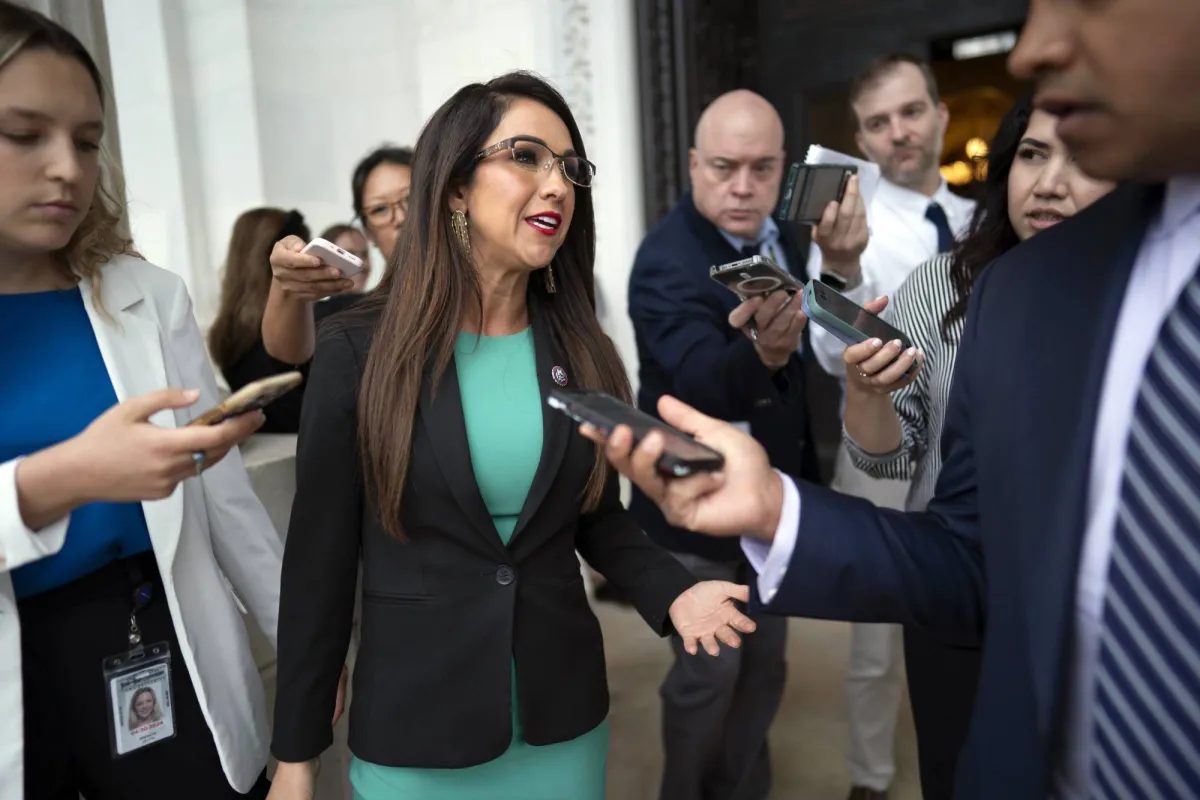 النائبة اليمينية المتطرفة لورين بويبرت التي تقود حملة مساءلة بايدن تغادر مجلس النواب الأربعاء الماضي (أ.ب)