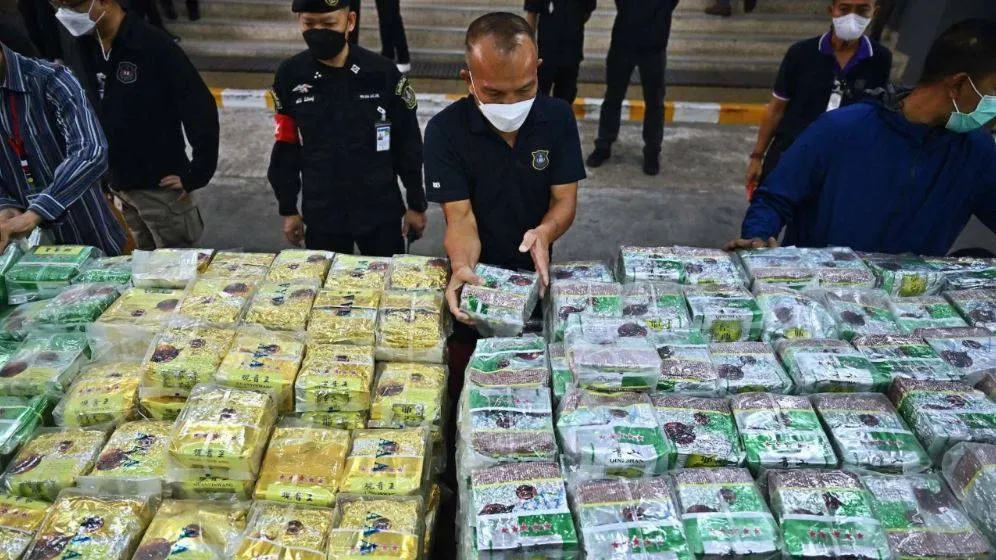 الشرطة تعرض عبوات من عقّار الميثامفيتامين في بانكوك خلال يناير الماضي (أرشيفية - أ.ف.ب)