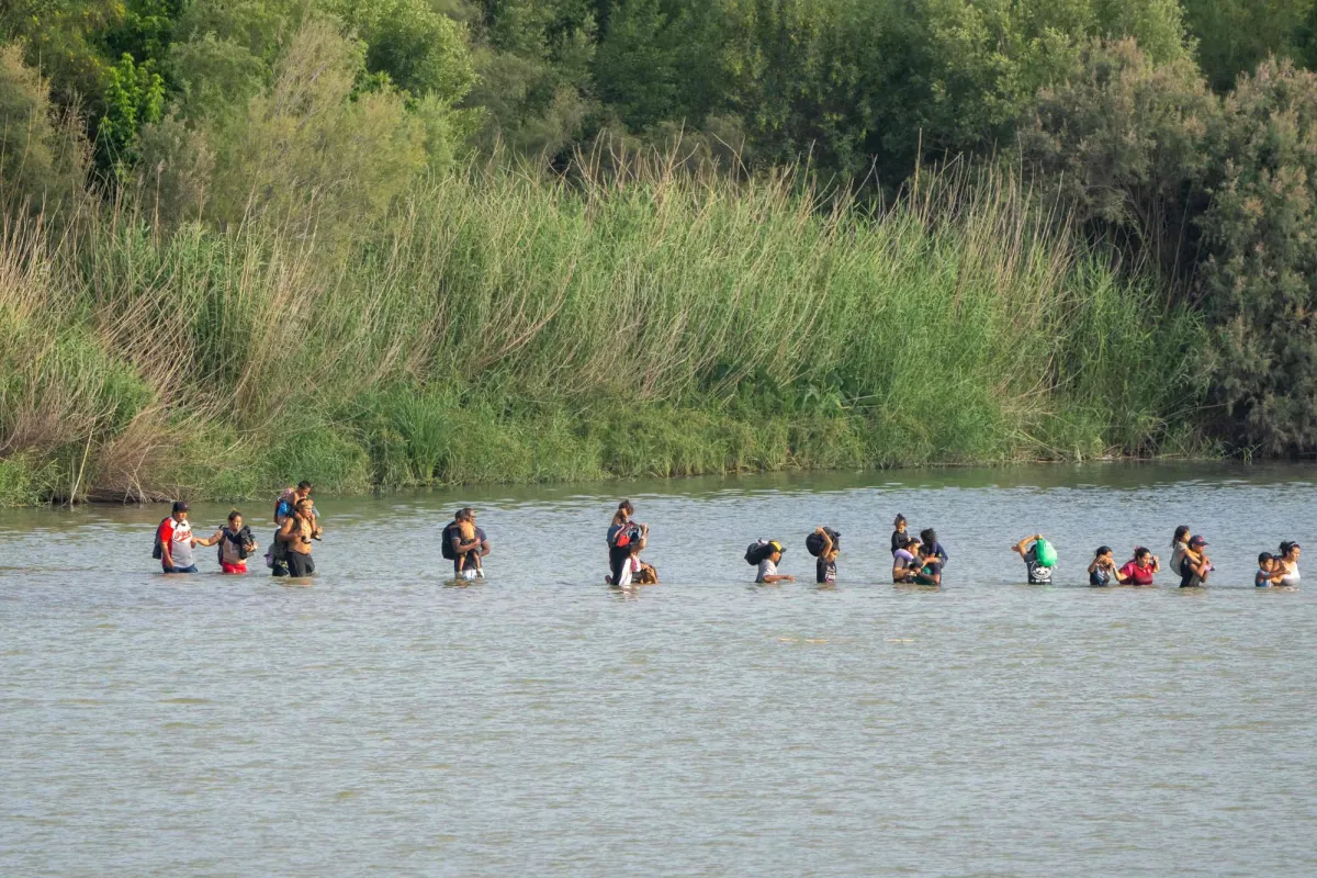 مهاجرون غير قانونيين يعبرون نهر ريو غراندي من المكسيك إلى الولايات المتحدة في 16 يوليو (تموز) الجاري (أ.ف.ب)