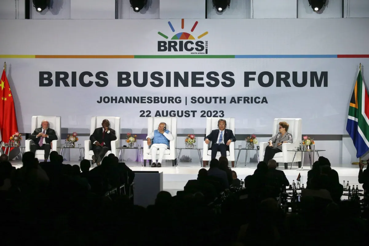 ويعتقد على نطاق واسع في الولايات المتحدة أن الاجتماع الذي يستمر ثلاثة أيام بمشاركة شخصية من الرؤساء الصيني شي جينبينغ، والبرازيلي لويس إيناسيو لولا دا سيلفا، والجنوب أفريقي سيريل رامافوزا، ورئيس وزراء الهند ناريندرا مودي، ولكن افتراضياً للرئيس الروسي فلاديمير بوتين على الأرجح بسبب مذكرة التوقيف التي أصدرتها ضده محكمة الجنايات الدولية قبل أشهر على خلفية الحرب في أوكرانيا؛ سيركز على درس النظر في ضم دول أخرى إلى التكتل، مثل المملكة العربية السعودية والإمارات العربية المتحدة وإيران، علماً أن أكثر من 20 دولة طلبت الانضمام. ويتوقع أن يحضر القمة وزير الخارجية السعودي الأمير فيصل بن فرحان، وكذلك الرئيس الإيراني إبراهيم رئيسي.