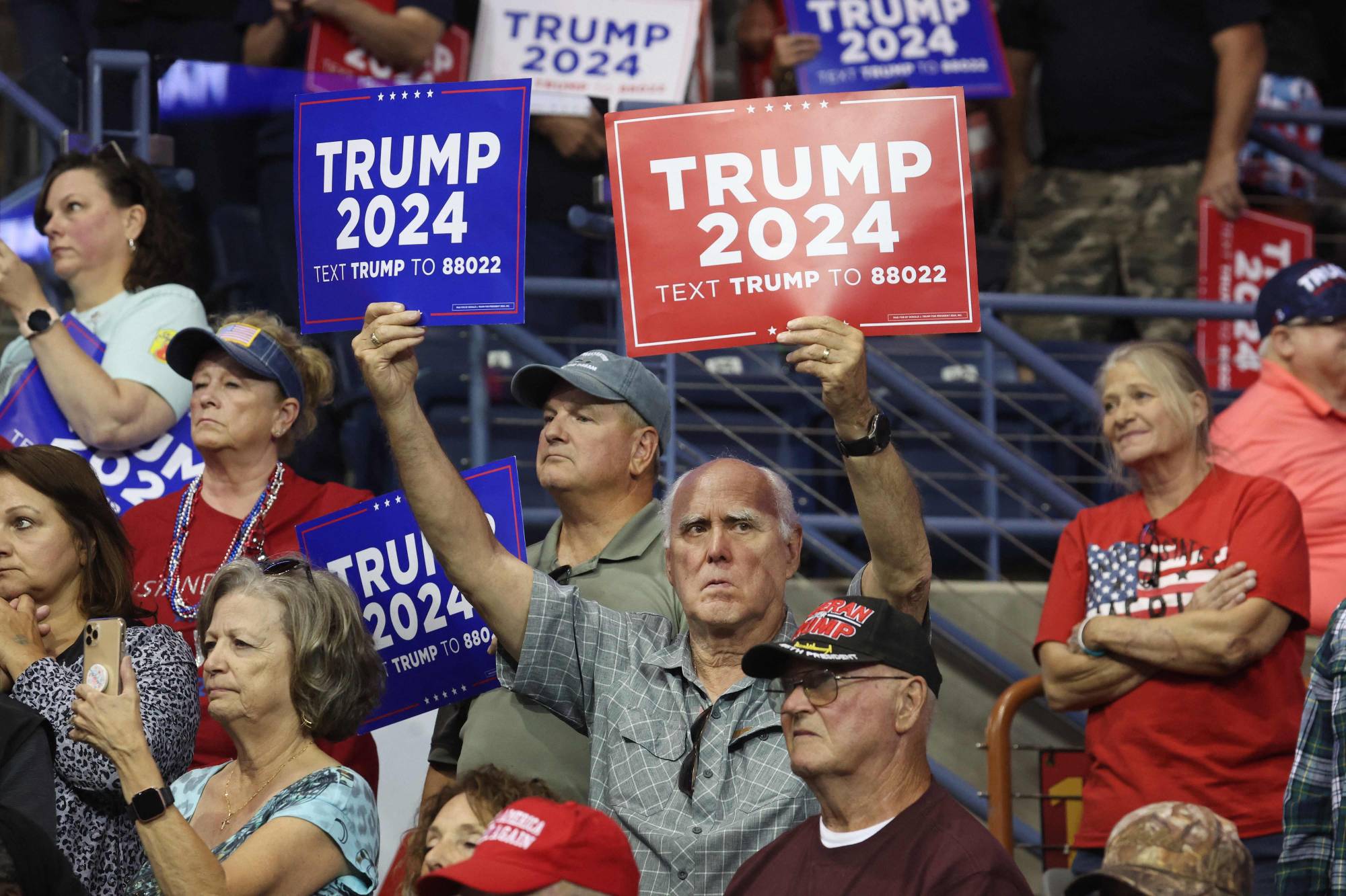 مؤيدو ترمب خلال إلقائه كلمة في داكوتا الجنوبية الجمعة (أ.ف.ب)