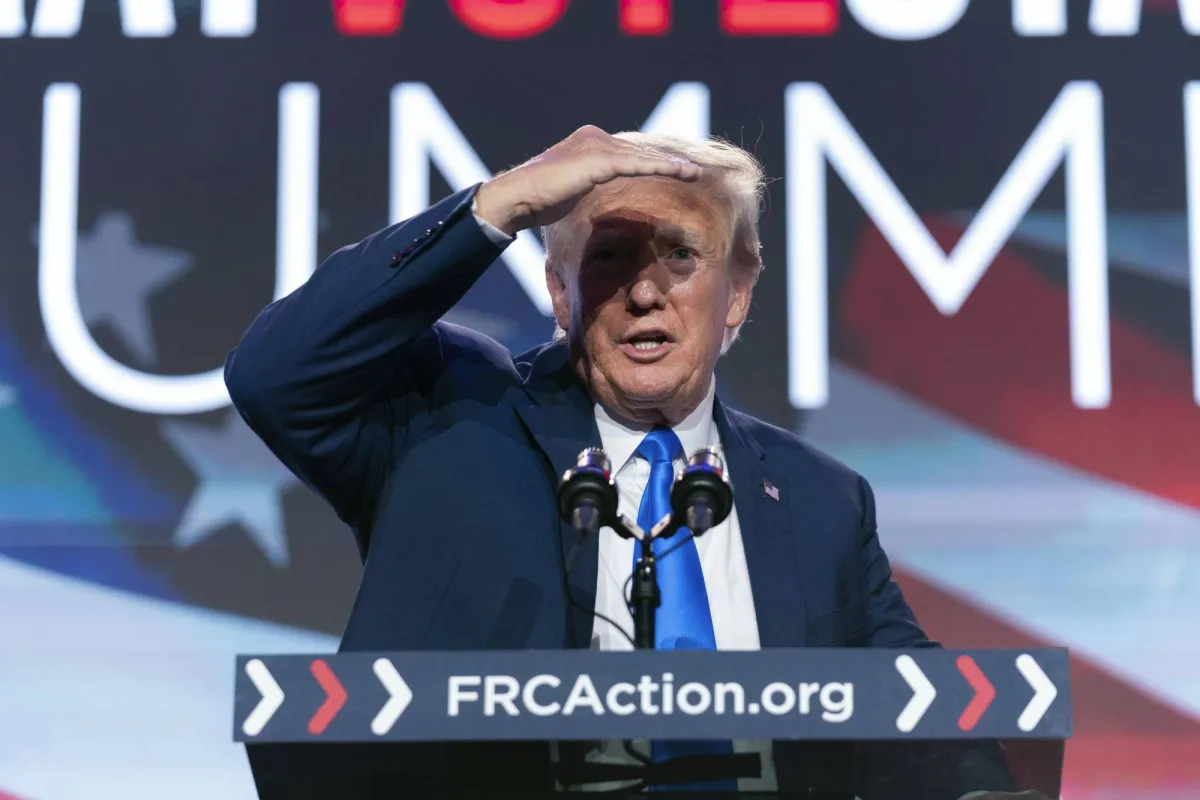 ترمب خلال إلقائه خطاباً بواشنطن في 15 سبتمبر الحالي (أ.ب)