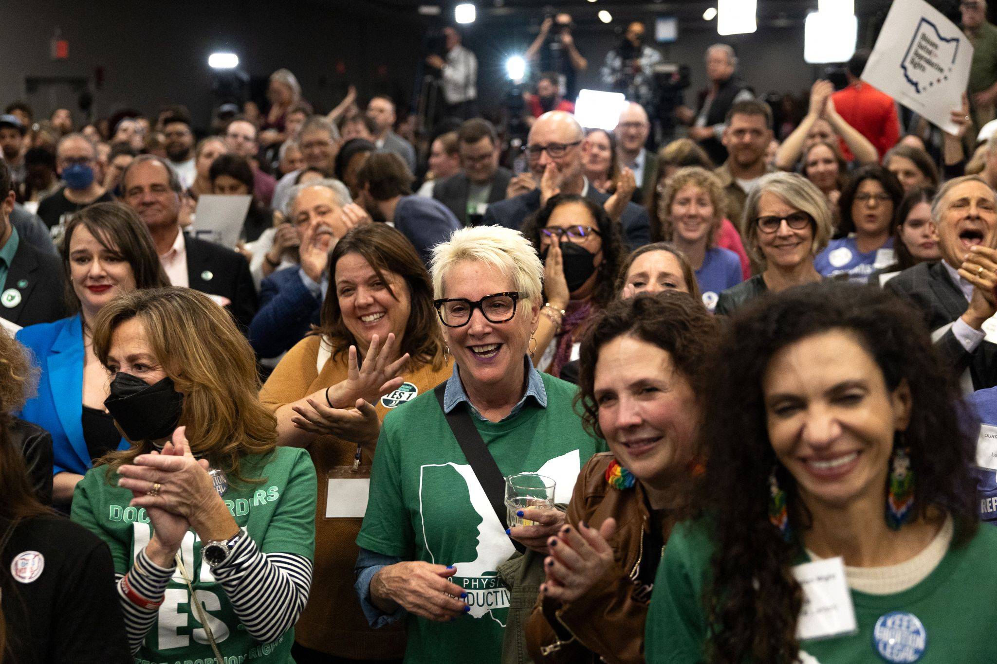 وفي أوهايو، وهي أيضاً ولاية جمهورية، تغلَّب الناخبون على حملة «لا» المموَّلة جيداً، التي دعمها الحاكم الجمهوري مايك دي واين، وأضافوا حقوق الإجهاض إلى دستور الولاية، وكذلك تشريع «الماريجوانا»، لتنضم ولايتهم إلى 26 ولاية أخرى قامت بتشريع استخدامها، مع هوامش ساحقة في المناطق الحضرية بالولاية وهوامش قوية في الضواحي، بما في ذلك أجزاء من شمال شرقي أوهايو التي فاز بها ترمب مرتين.