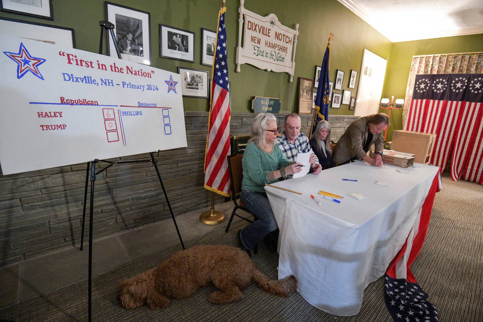 مركز للاقتراع في ديكسفيل نوتش نيوهامشير الأميركية (رويترز)