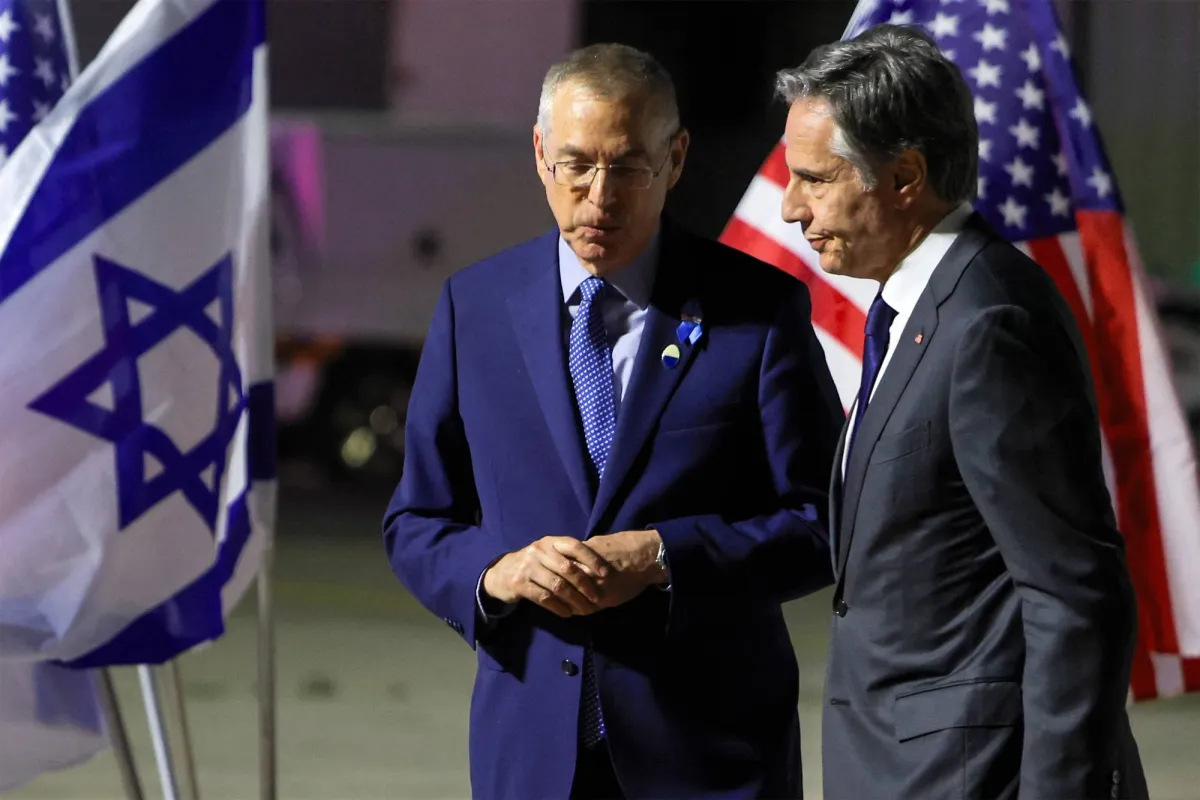 السفير الإسرائيلي لدى الولايات المتحدة مايكل هرتزوغ مع وزير الخارجية الأميركي أنتوني بلينكن (أ.ف.ب)