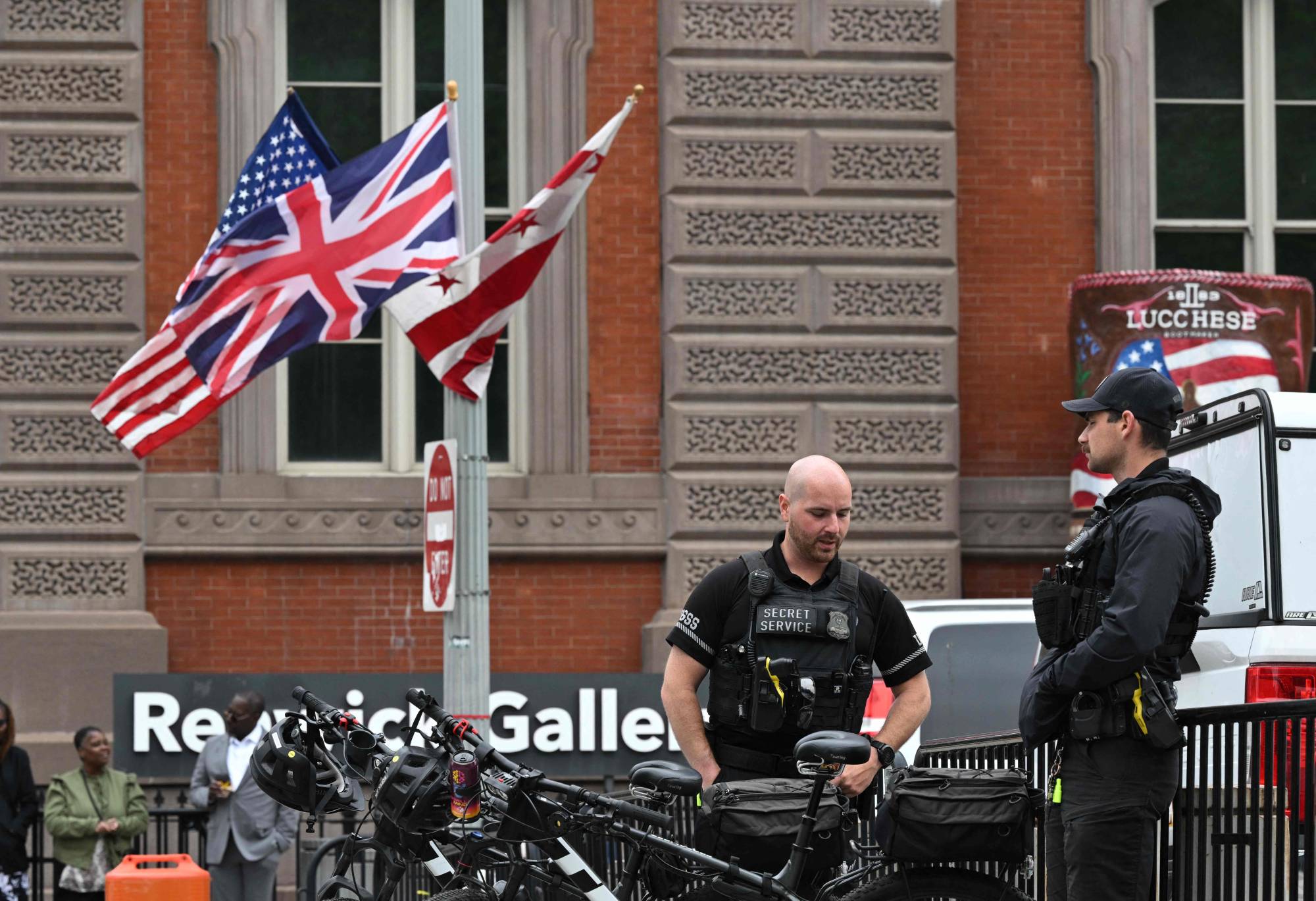 أفراد من جهاز «الخدمة السرية» يقفون بالقرب من البيت الأبيض الأحد في إطار التحضيرات لزيارة الملك تشارلز الثالث (أ.ف.ب)