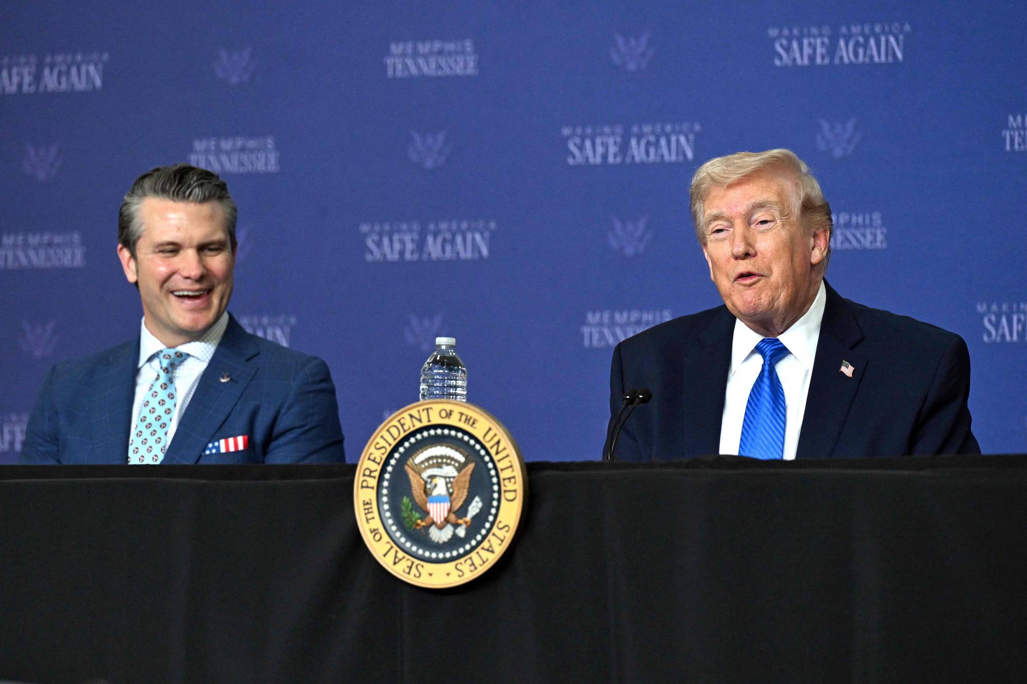 ترمب وهيغسيث يشاركان في فعالية بممفيس بتينيسي يوم 23 مارس 2025 (أ.ب)