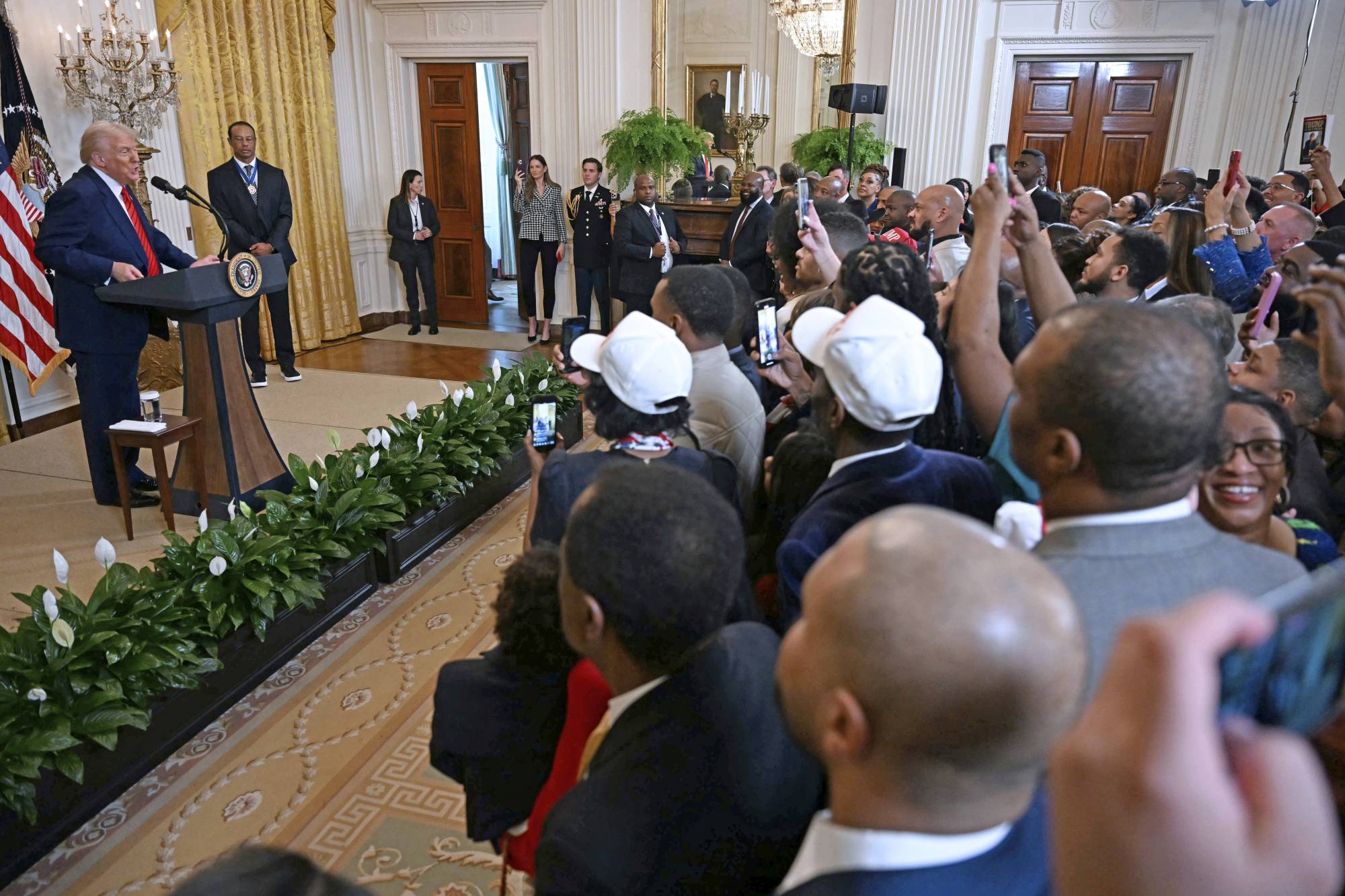 ترأس الرئيس الأميركي دونالد ترمب، إلى جانب بطل الغولف تايغر وودز، الخميس، احتفالاً بمناسبة شهر تاريخ السود الذي يحتفي بتاريخ الأميركيين السود، في وقت تعمل فيه إدارته على تغيير السياسات المتعلقة بالتنوع.