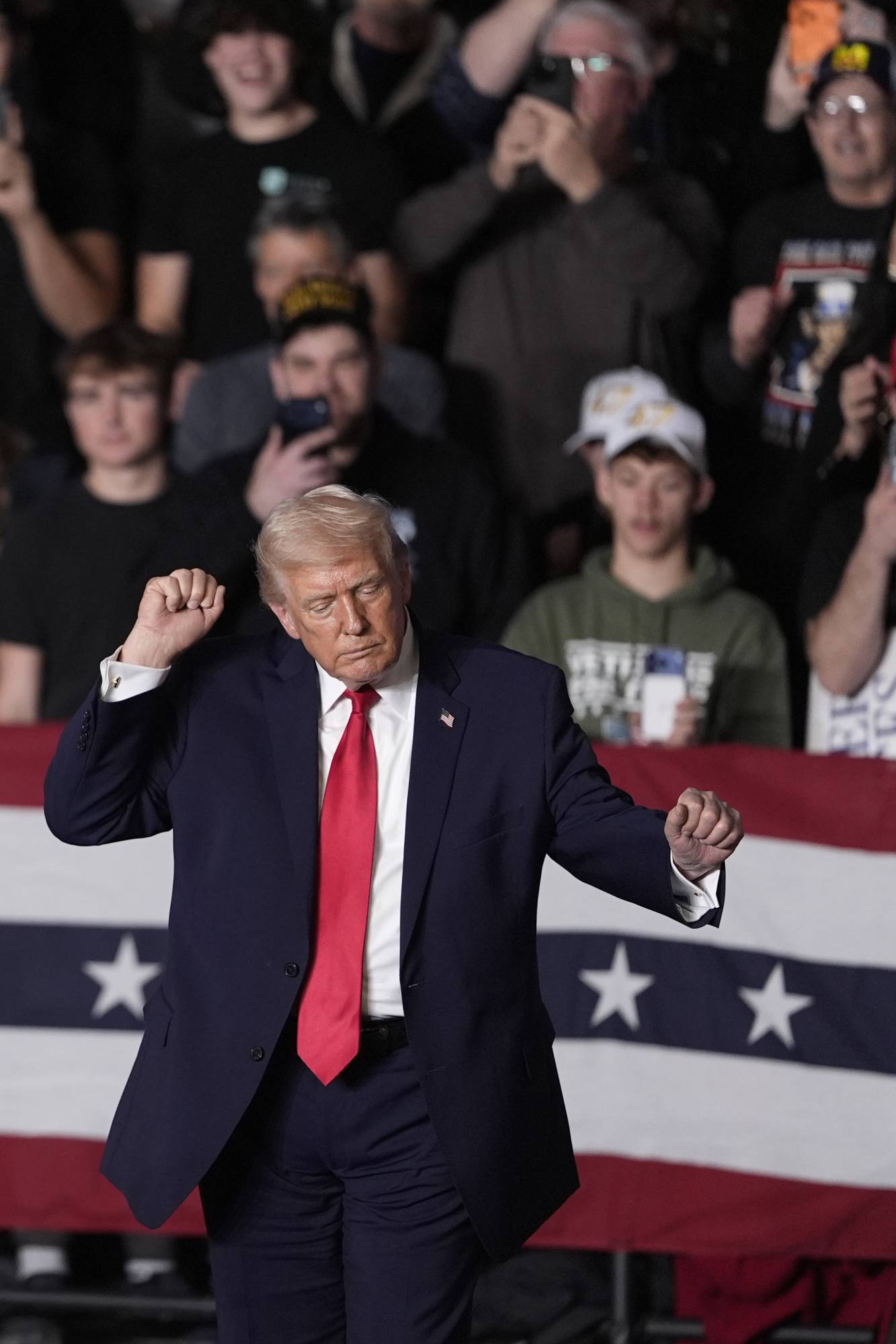 الرئيس دونالد ترمب يرقص خلال مناسبة في أيوا (إ.ب.أ)