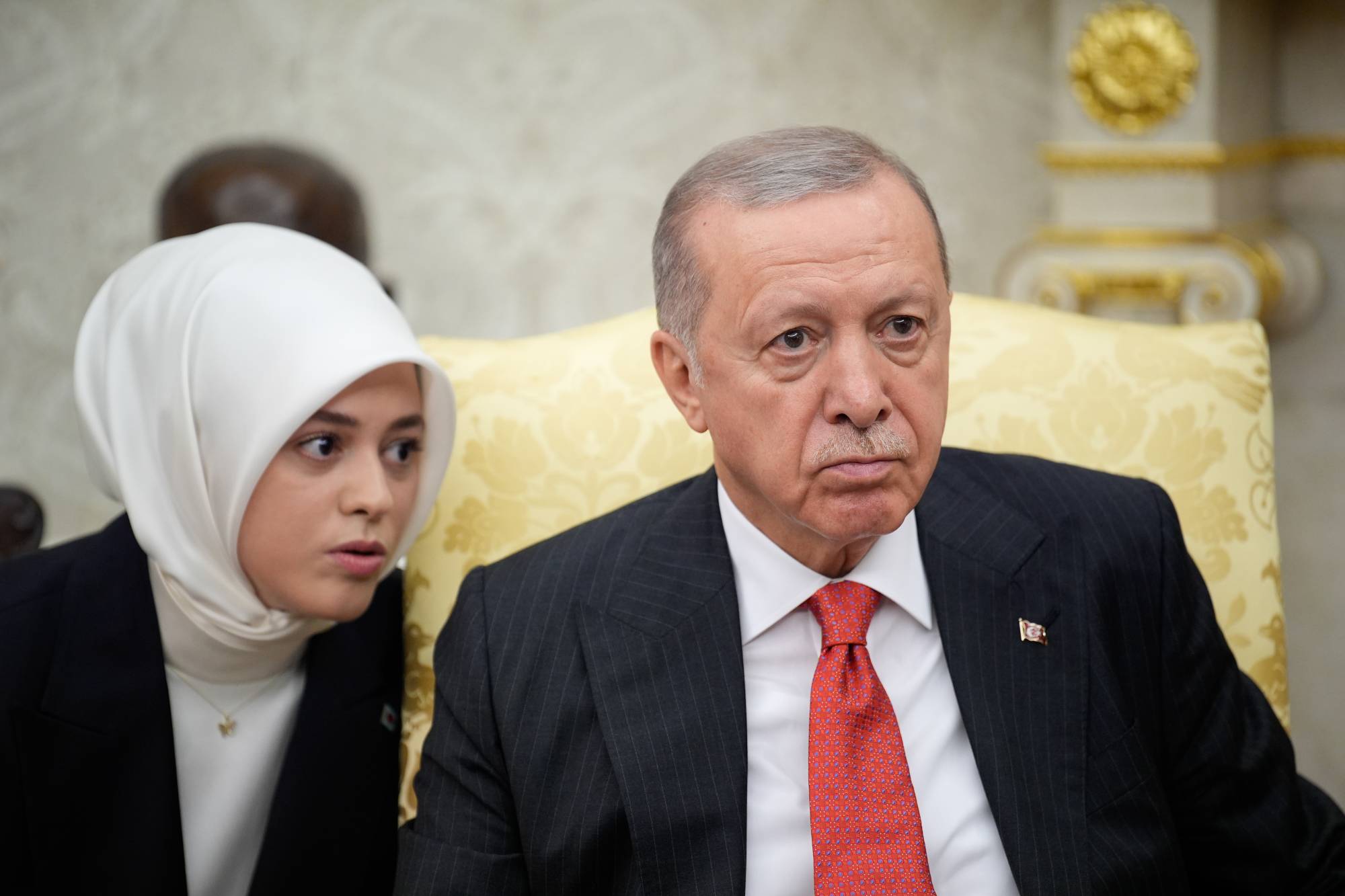 الرئيس التركي رجب طيب إردوغان يستمع في أثناء لقائه بالرئيس الأميركي دونالد ترمب (غير مصور) في المكتب البيضوي بالبيت الأبيض في واشنطن العاصمة 25 سبتمبر 2025.(إ.ب.أ)