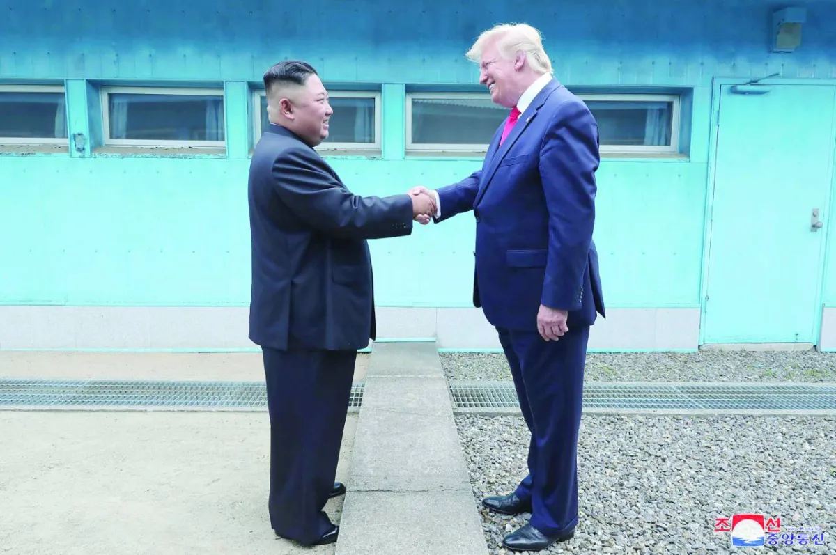مصافحة بين دونالد ترمب وكيم جونغ أون في لقاء سابق على الحدود بين الكوريتين خلال الولاية الأولى للرئيس الأميركي (أ.ب)