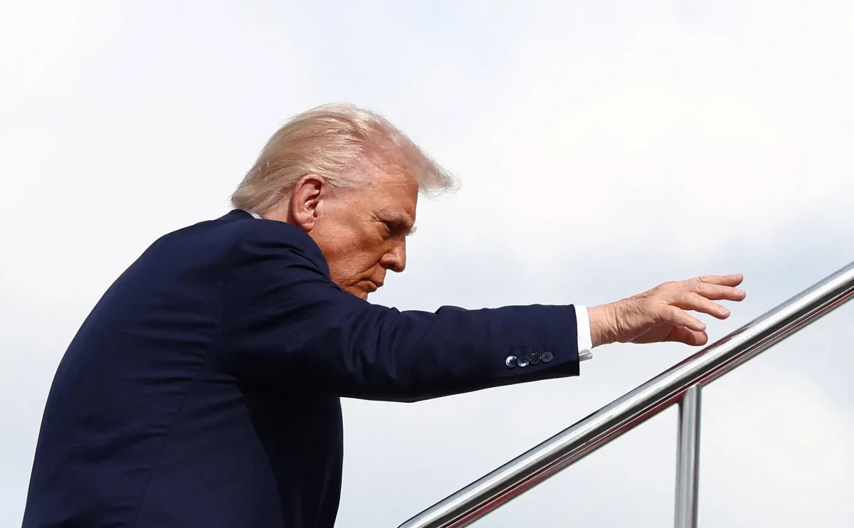 الرئيس الأميركي دونالد ترمب يستقل الطائرة الرئاسية في مطار هانيدا بالعاصمة اليابانية (رويترز)