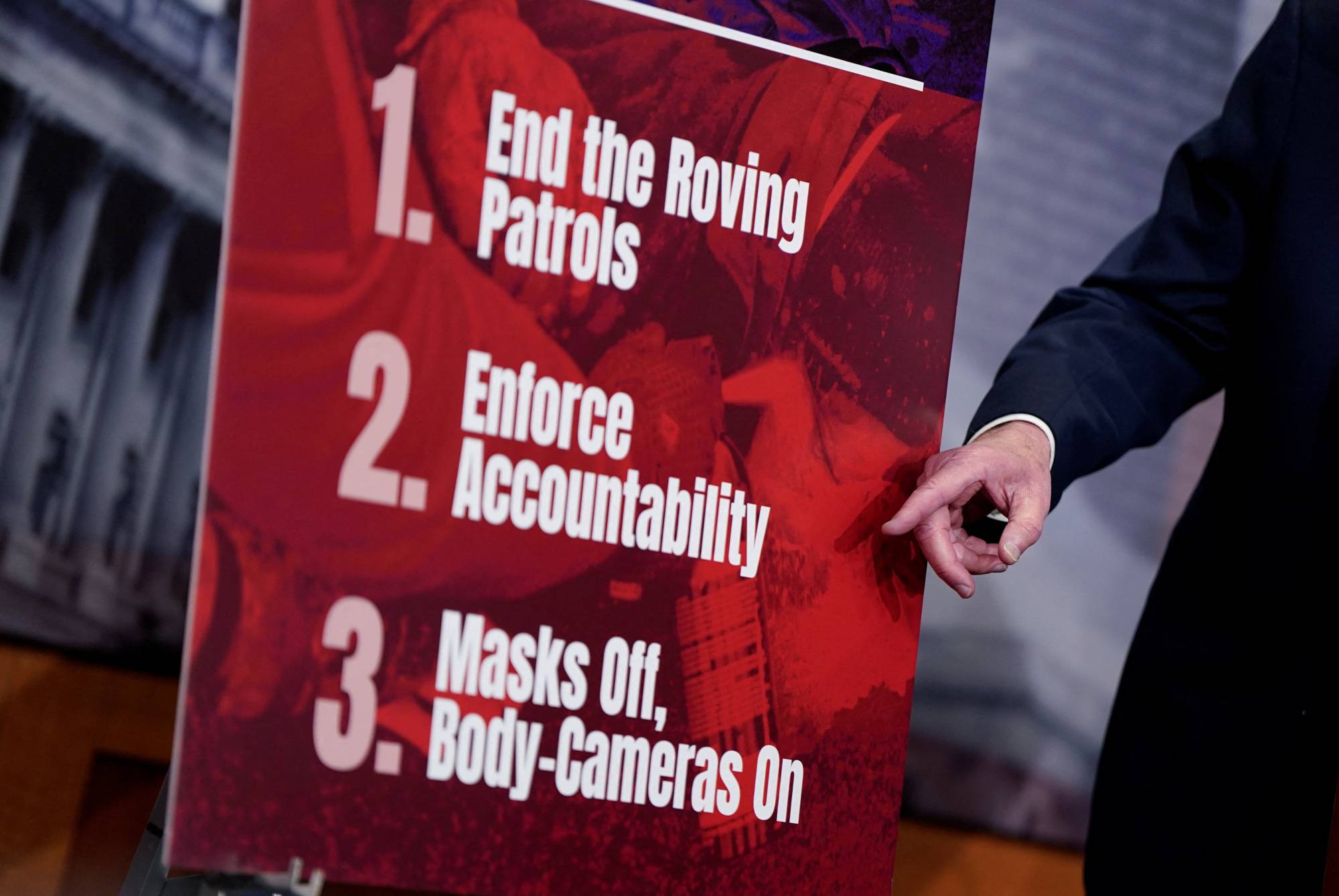 الديمقراطيون يصرون على قائمة من الشروط والقيود على وكالة «آيس» تشمل وقف الدوريات المتنقلة تطبيق المساءلة نزع الكمامات وتشغيل كاميرات الجسم (رويترز)