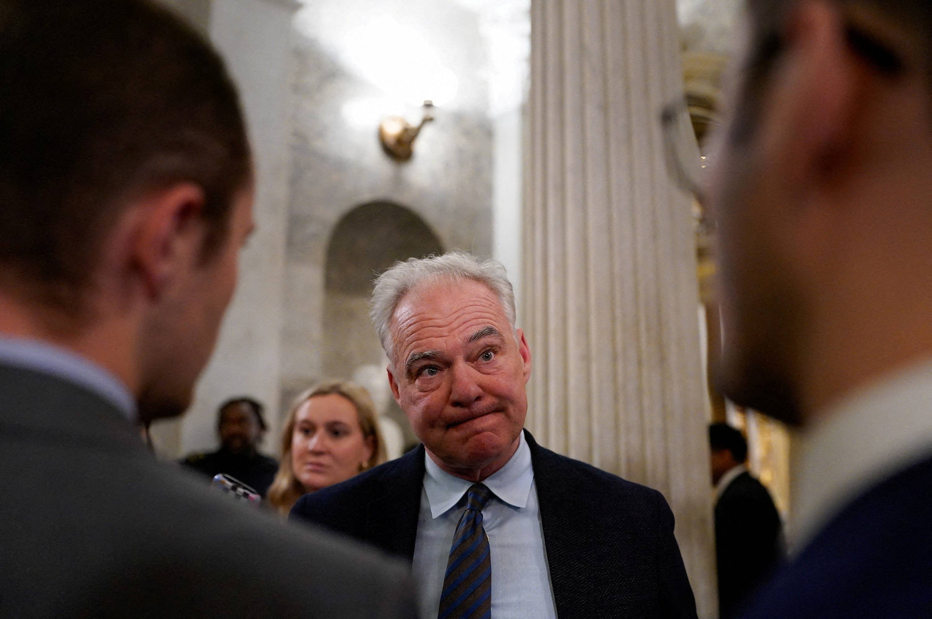 وبينما تفهم السيناتور تيم كاين الذي صوت مع الجمهوريين هذه الانتقادات، لكنه أشار في الوقت نفسه إلى صعوبة التعاطي مع الأزمة، قائلاً: «لقد قادنا بأفضل طريقة ممكنة نظراً لأننا نمثل ولايات مختلفة ولدينا آراء مختلفة بهذا الخصوص». فكاين يمثل ولاية فيرجينا القريبة من واشنطن العاصمة، حيث يقطن مئات الآلاف من الموظفين الفيدراليين الذين خسروا رواتبهم، وقد تعرض لضغوطات كثيرة منهم لإعادة فتح الحكومة، لهذا انضم إلى الصف الجمهوري بعد أن اعترف بغياب استراتيجية واضحة من قبل حزبه للتصدي لترمب.