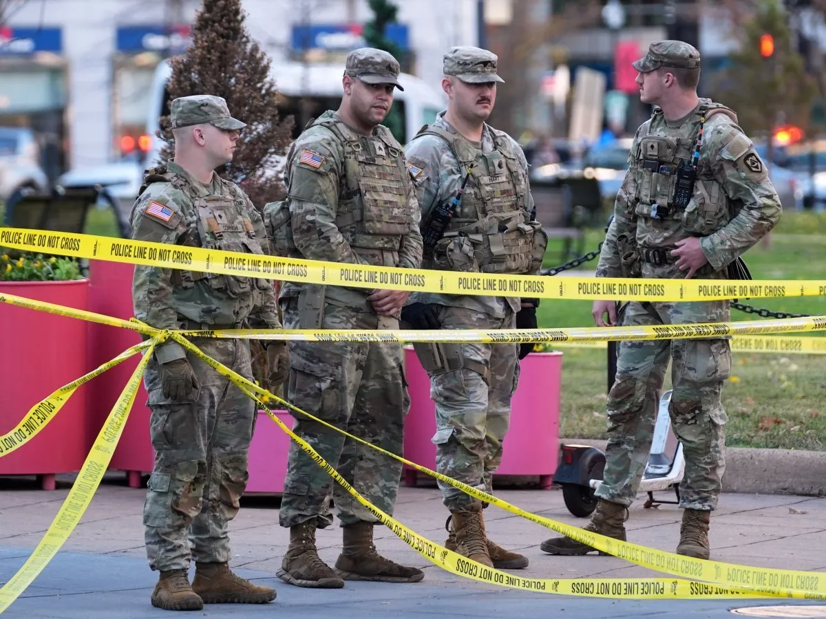 عناصر من «الحرس الوطني» في موقع الحادث قرب البيت الأبيض (أ.ب)