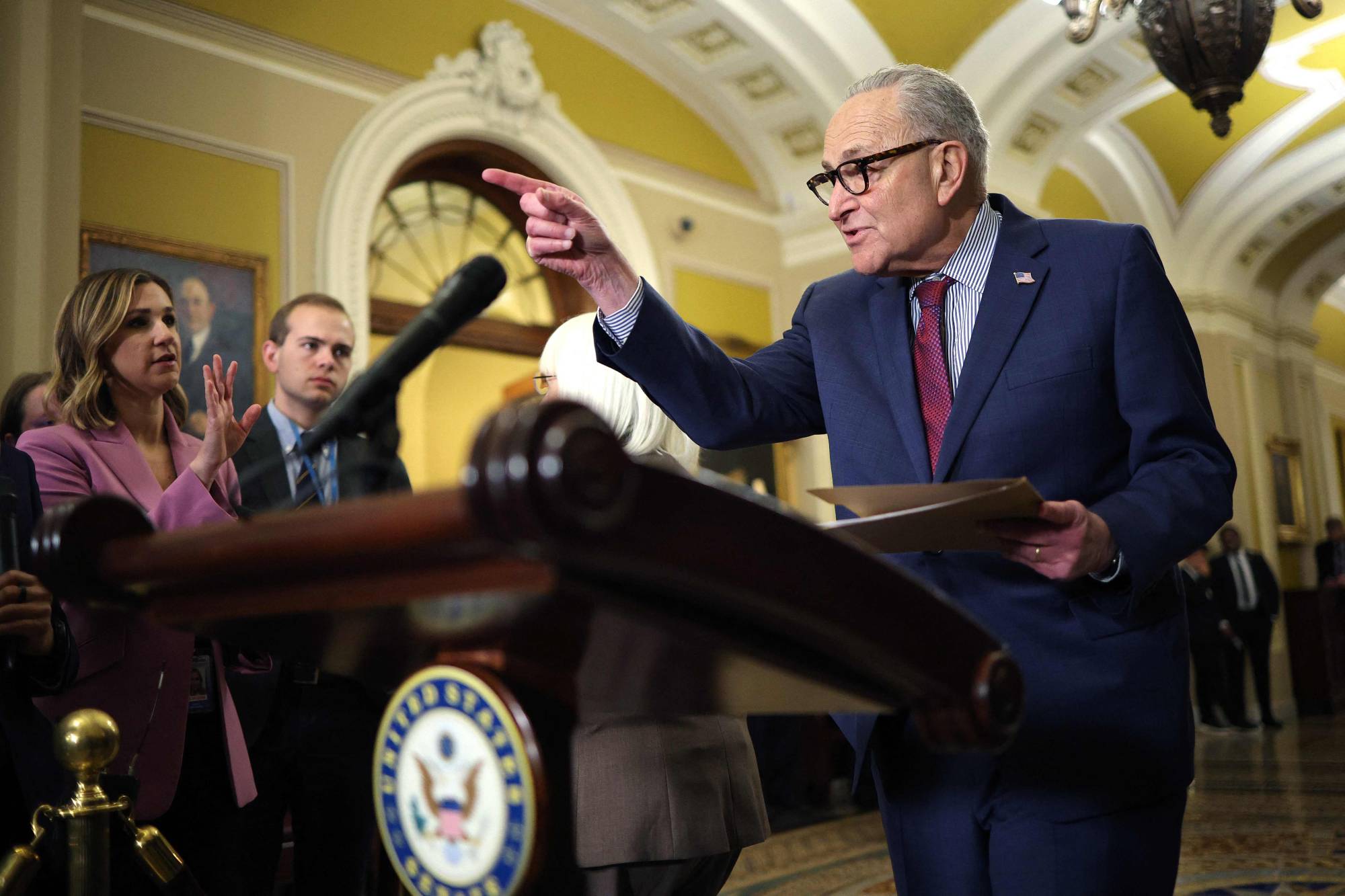 فقد أعلن زعيم الديمقراطيين في مجلس الشيوخ، تشاك شومر، أن حزبه سيعرقل إقرار التمويل في ظل «انتهاكات (أيس)» على حد تعبيره، وقال في بيان إن «ما يحدث في مينيسوتا مثير للغضب، وغير مقبول في أي مدينة أميركية». وطالب الزعيم الديمقراطي القيادات الجمهورية بسحب تمويل وزارة الأمن القومي من مشروع التمويل الذي يتضمن تمويل وزارات الدفاع والصحة والعمل والتعليم والمواصلات. كما دعاهم إلى إعادة النظر في تمويل «أيس» قائلاً: «لن يسمح الديمقراطيون في مجلس الشيوخ بتمرير مشروع قانون التمويل الحالي لوزارة الأمن القومي». وأشار إلى حادثة مينيابوليس، فاتهم عناصر «أيس» بسوء استخدام سلطتهم، مضيفاً: «على الجمهوريين في مجلس الشيوخ أن يعملوا مع الديمقراطيين لدفع مشاريع قوانين التمويل الخمسة الأخرى قدماً، بينما نعمل على إعادة صياغة مشروع قانون وزارة الأمن القومي».