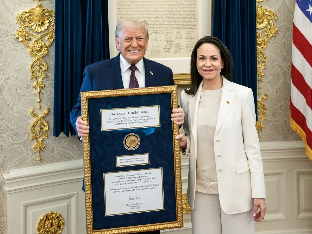ترمب مستقبلا الخميس رئيسة المعارضة الفنزويلية ماريا ماتشادو التي أهدته جائزة "نوبل للسلام" التي فازت بها (إ.ب.أ)
