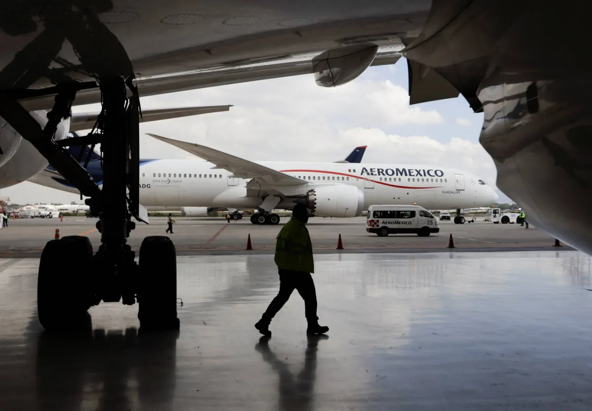 طائرة تابعة لشركة «إيرومكسيكو» في مطار بينيتو خواريز الدولي بمدينة مكسيكو (رويترز)