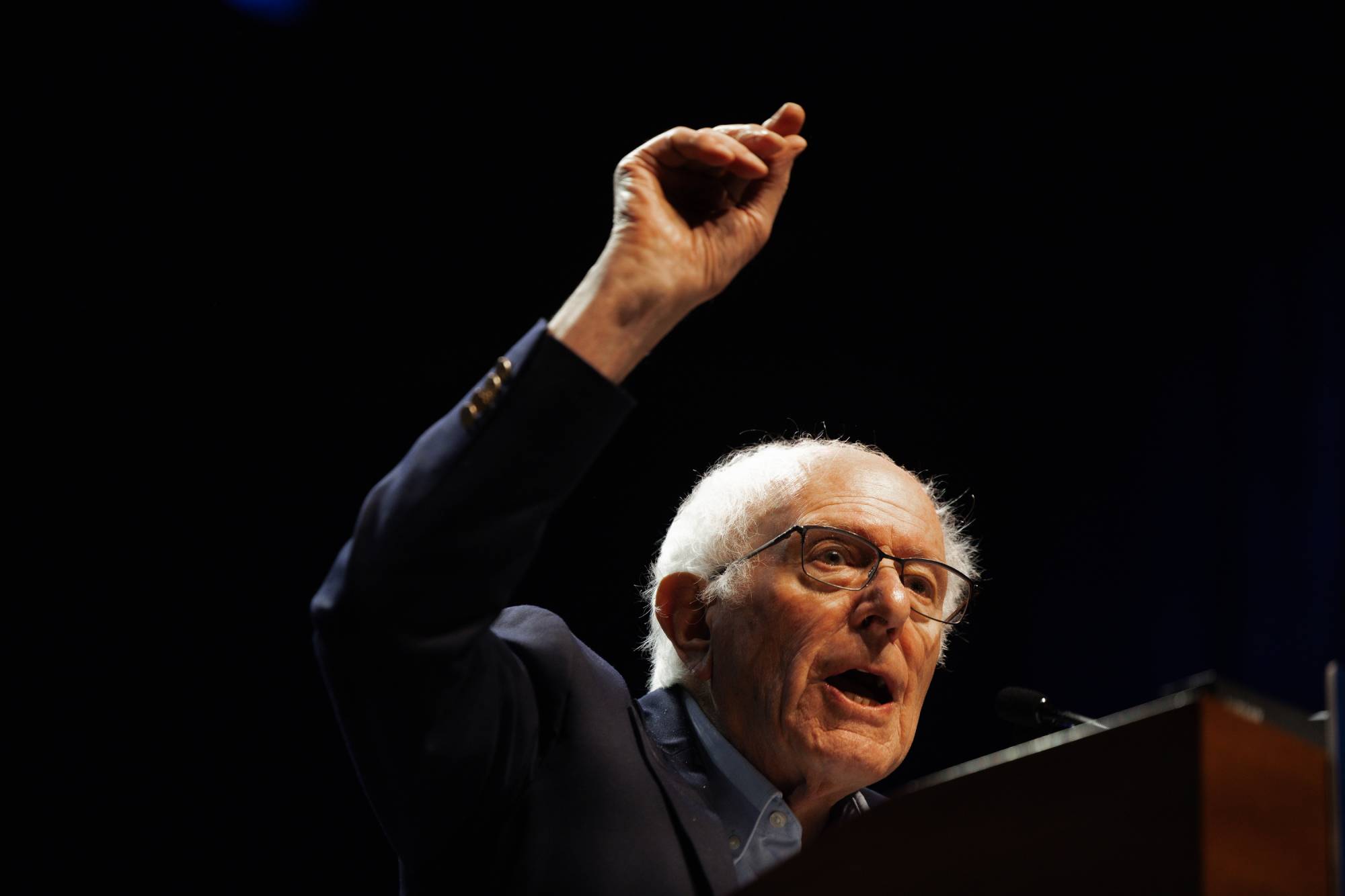 السيناتور التقدمي بيرني ساندرز في تجمع للنقابات العمالية بنيويورك يوم 14 أبريل 2026 (إ.ب.أ)