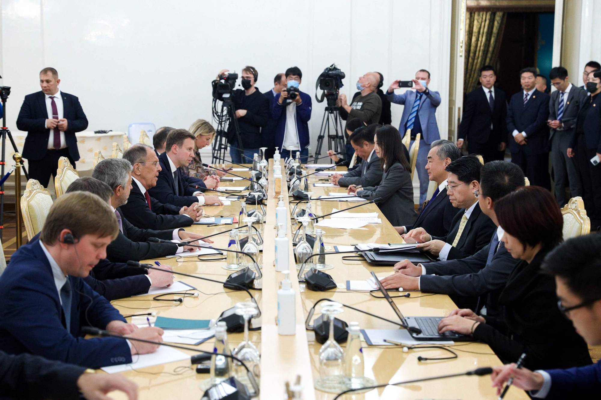 وقال وانغ في بداية محادثاته مع لافروف: «كلما أصبحت الإجراءات الأحادية الجانب للهيمنة والمواجهة بين الكتل أكثر عنفاً، زادت أهمية مواكبة العصر وإظهار الشعور بالواجب كقوى عظمى، والوفاء بالتزاماتنا الدولية بشكل أكبر».