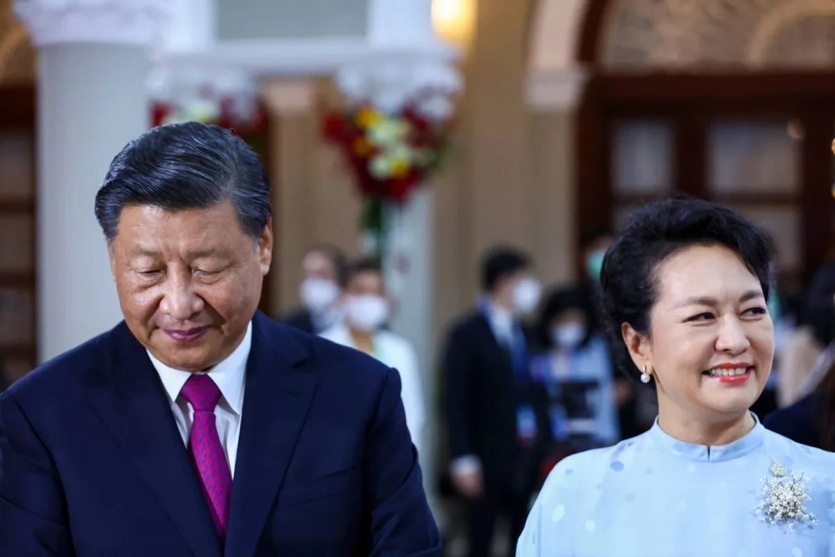 الرئيس الصيني شي جينبينغ وزوجته بنغ ليوان (إ.ب.أ)