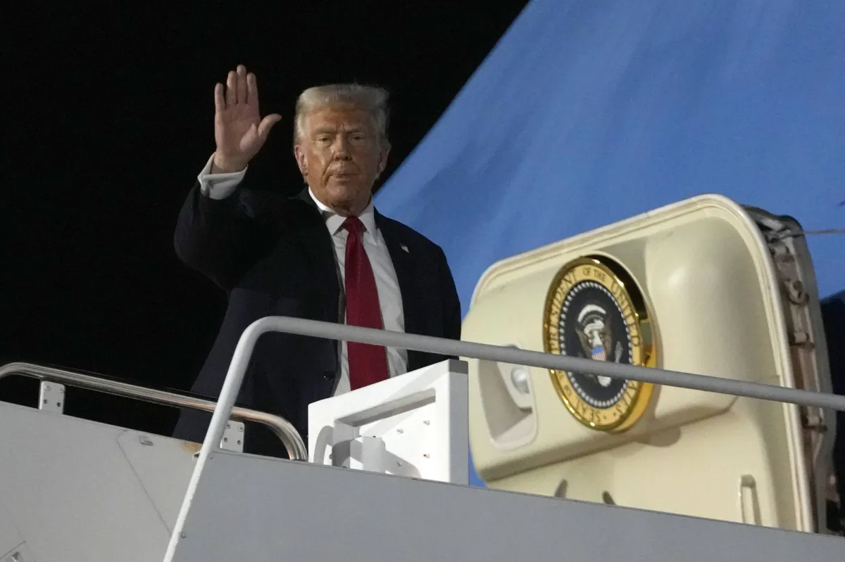 الرئيس الأميركي دونالد ترمب يلوّح بيده أثناء صعوده إلى الطائرة الرئاسية في نيو أورليانز بالولايات المتحدة في 9 فبراير 2025 (أ.ب)