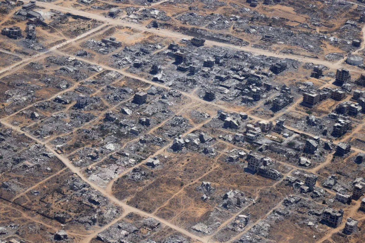 صورة تظهر دماراً واسعاً في وسط قطاع غزة كما أظهرته طائرة تابعة لسلاح الجو الألماني أثناء إسقاطها مساعدات إنسانية... 6 أغسطس 2025 (إ.ب.أ)
