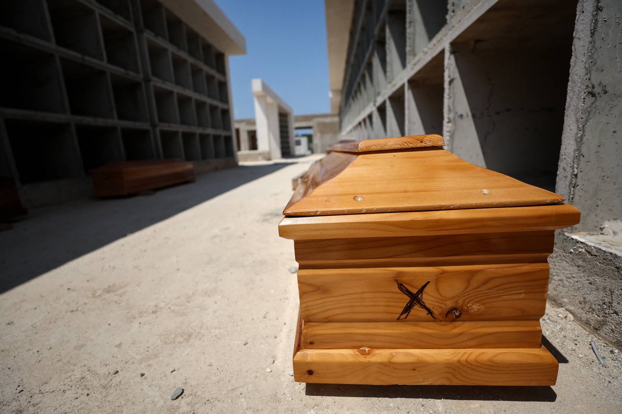 نعش خشبي عليه علامة «إكس» (مجهول) شُوهد في مقبرة محلية في لامبيدوسا بإيطاليا تُدفن فيها جثث بعض ضحايا الهجرة غير الشرعية (رويترز)