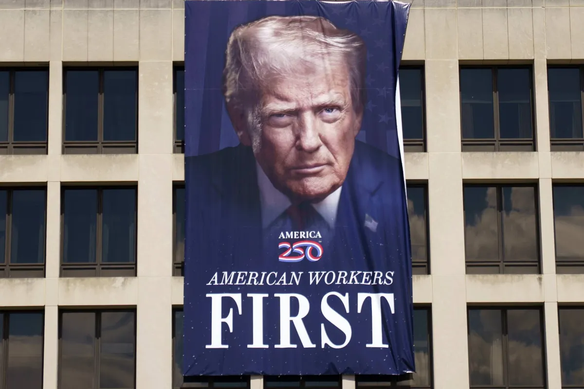 صورة عملاقة لترمب على واجهة وزارة العمل بواشنطن الاثنين (إ.ب.أ)