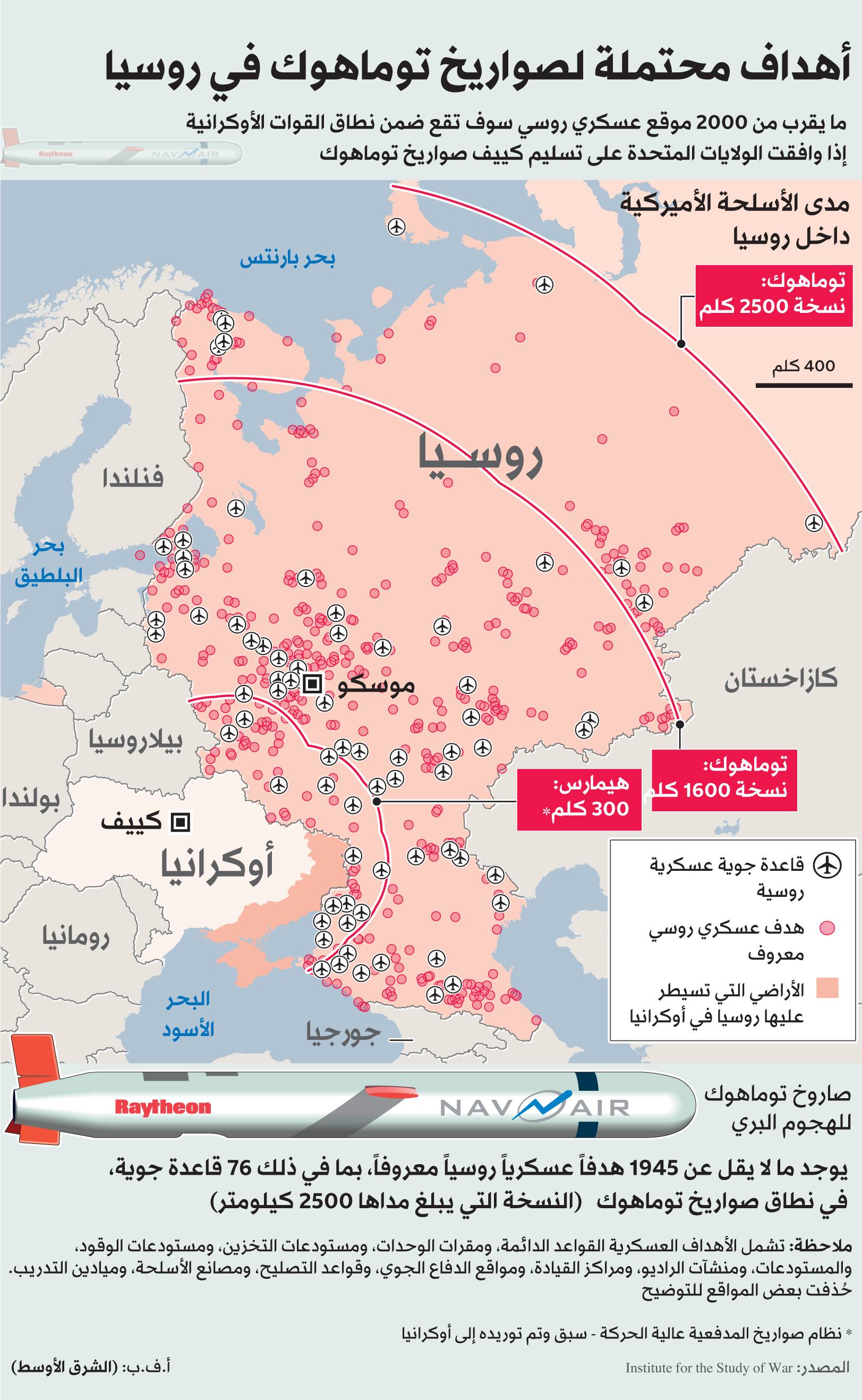 وتتوقع كييف أن توافق واشنطن على بيع صواريخ توماهوك بعيدة المدى. وقد حذّر الكرملين البيت الأبيض مراراً من اتخاذ هذه الخطوة.