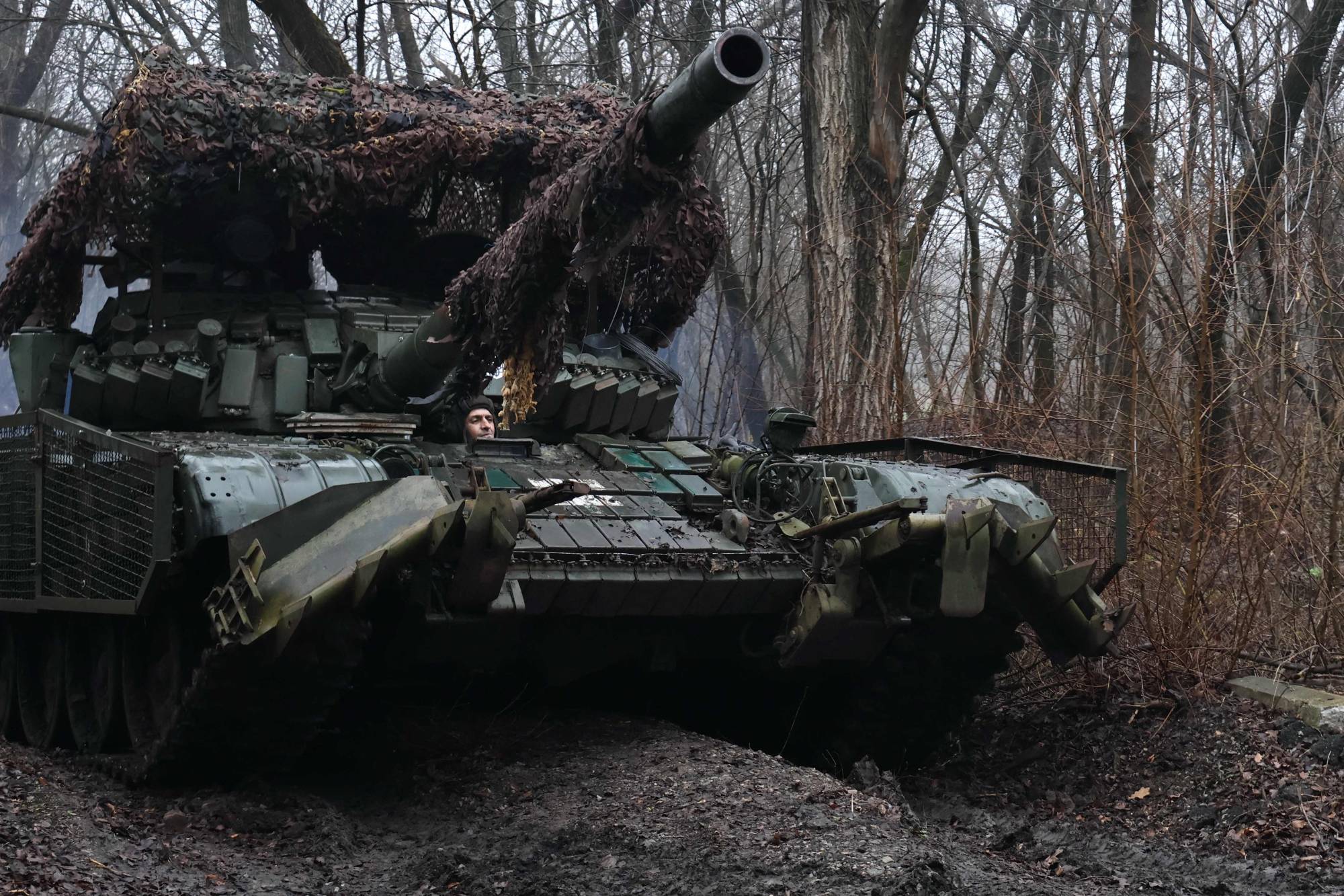 جندي أوكراني يقود دبابة في خطوط الجبهة بزابوريجيا يوم 29 نوفمبر (أ.ف.ب)